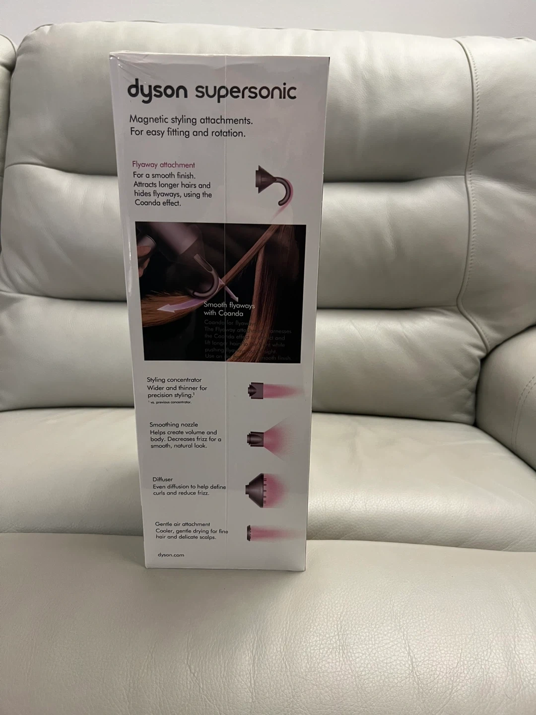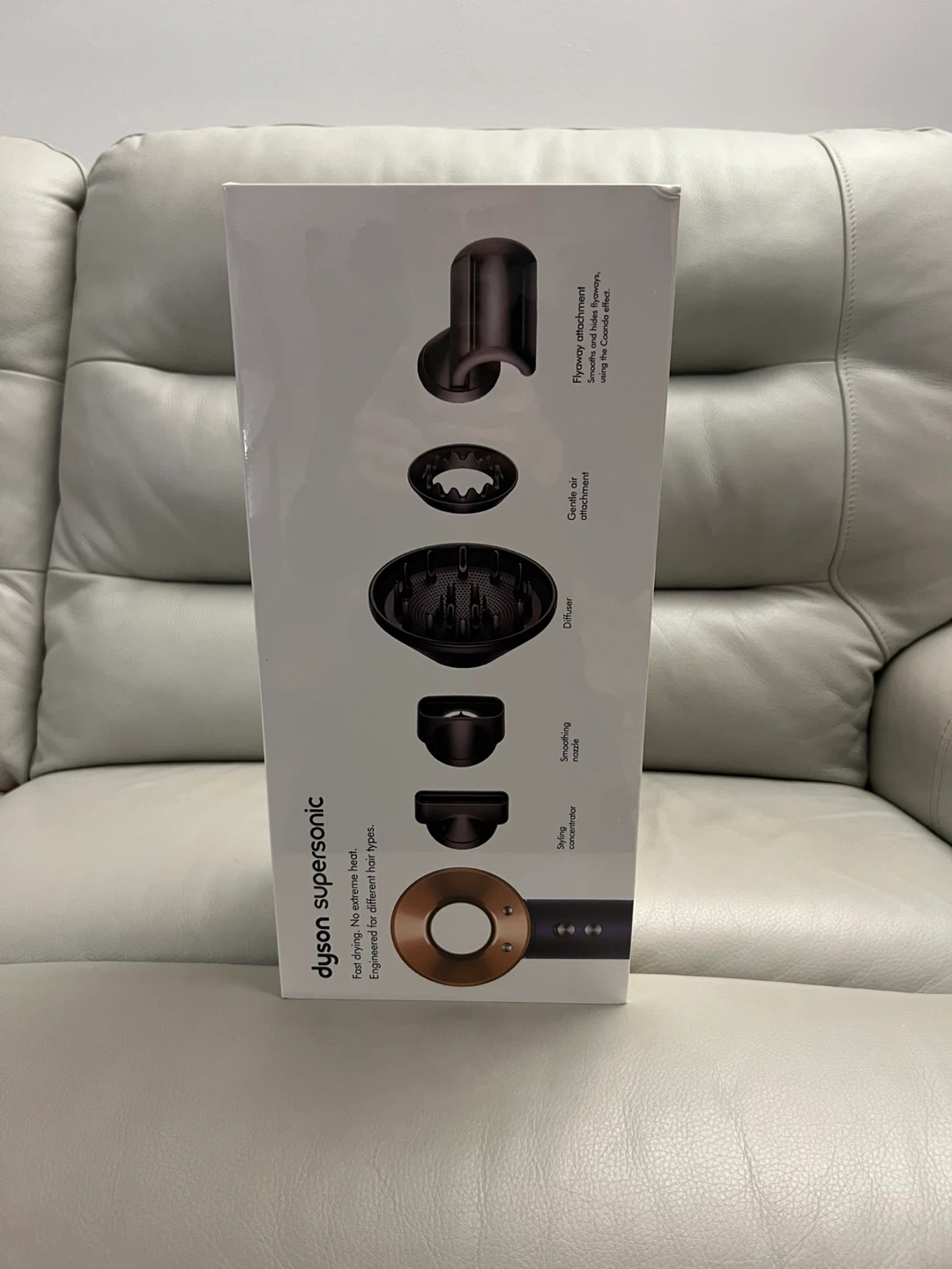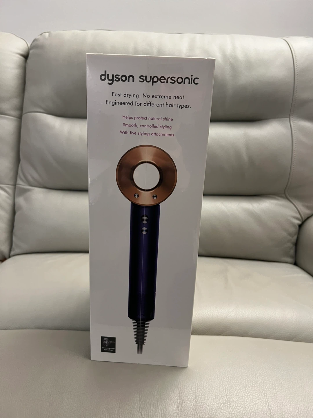 Selling a brand new Dyson Supersonic hair dryer! It's engineered for different hair types, offering fast drying and no extreme heat. It helps protect natural shine, leaving hair smooth and controlled with five styling attachments. The magnetic styling attachments allow for easy fitting and rotation. Included are the flyaway attachment, styling concentrator, smoothing nozzle, diffuser, and gentle air attachment. Get ready for a salon-worthy experience at home!