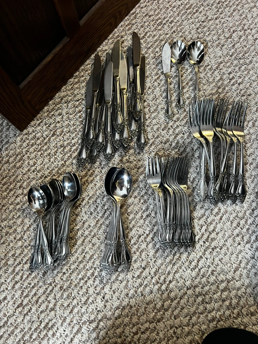 Selling a complete set of vintage silverware. Includes knives, forks, and spoons. Perfect for adding a touch of elegance to your dining experience!