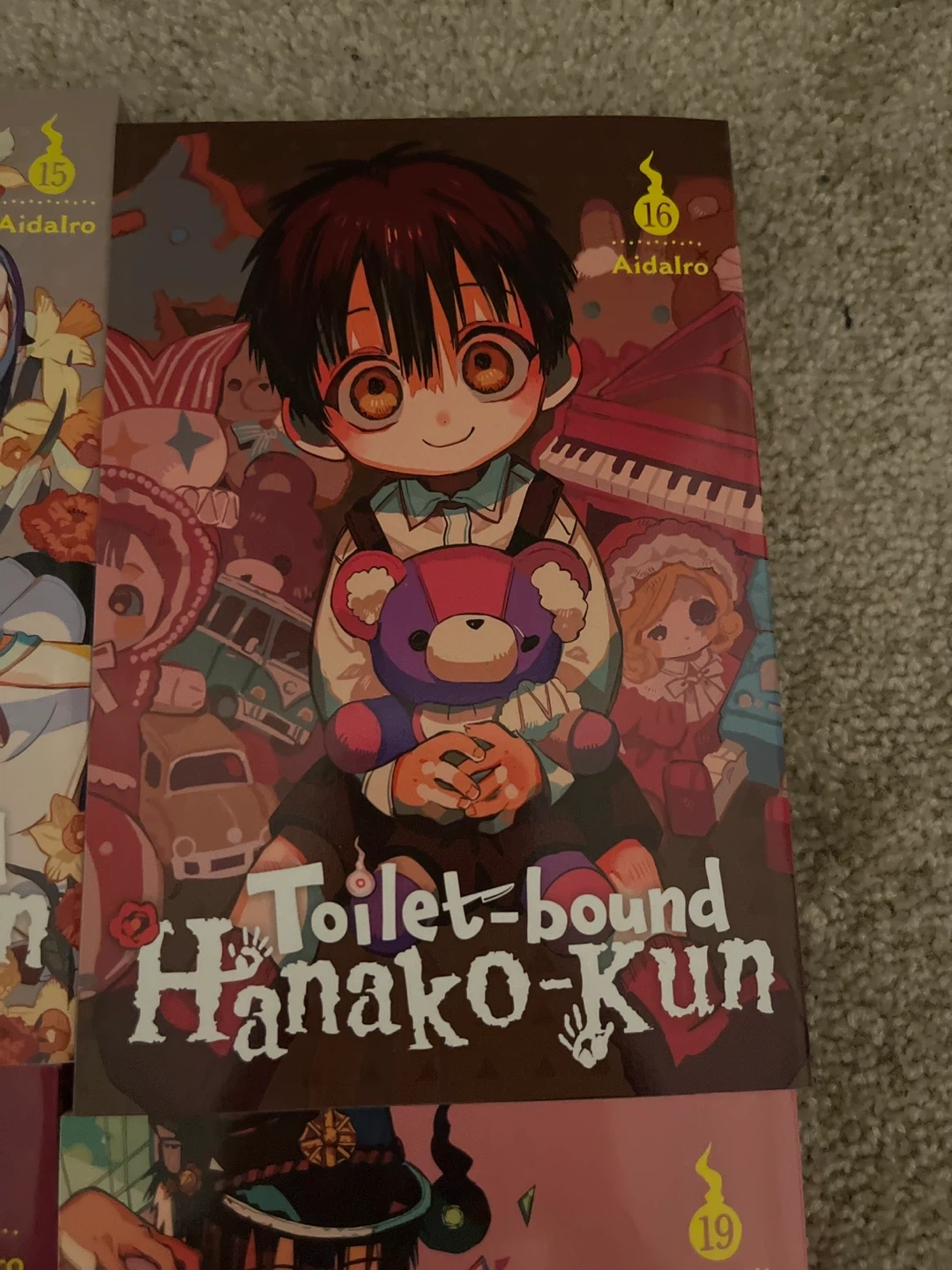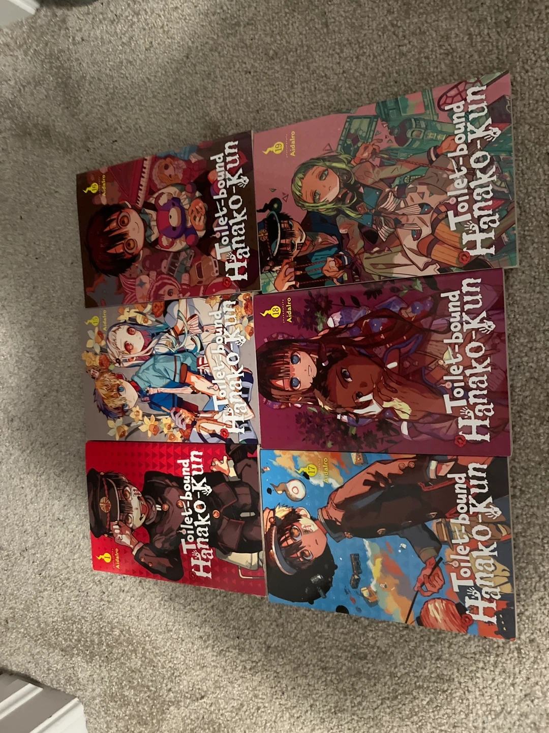 Selling volumes 1, 15, 16, 17, 18, and 19 of the Toilet-bound Hanako-Kun manga series by Aidairo smoke and pet free home 🏠 10$ each 55& for all