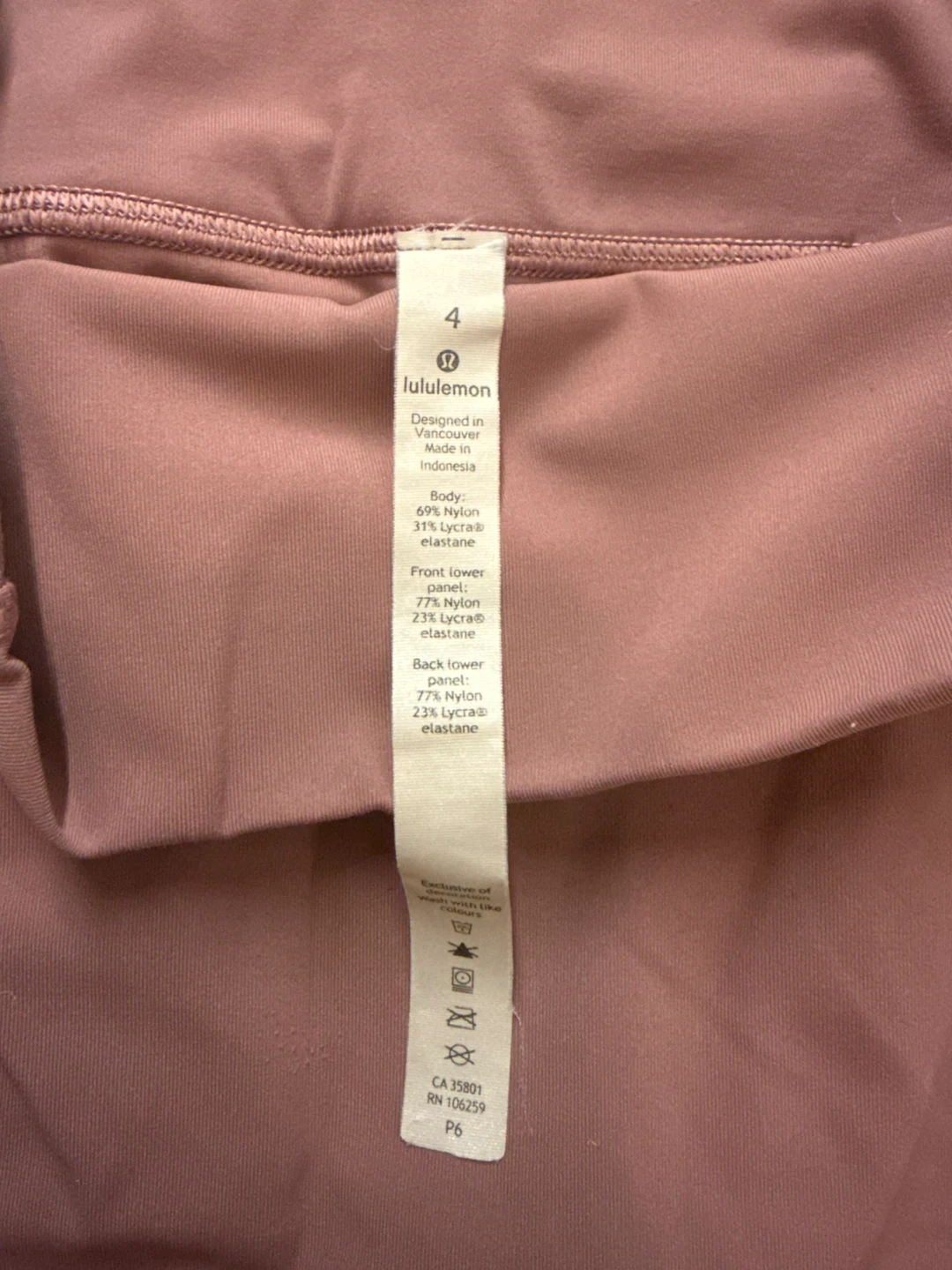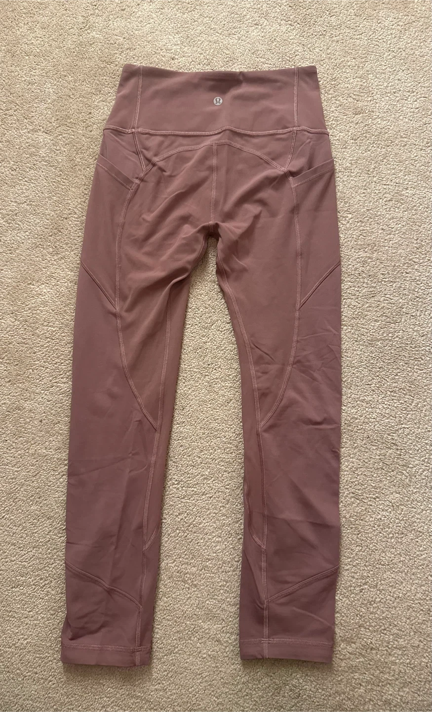 Selling a pair of Lululemon Align leggings in size 4. They're in great condition! They are perfect for running with nice pockets for phone and wallet on either side, as well as reflective strips on the ankle for running when it’s dark out!