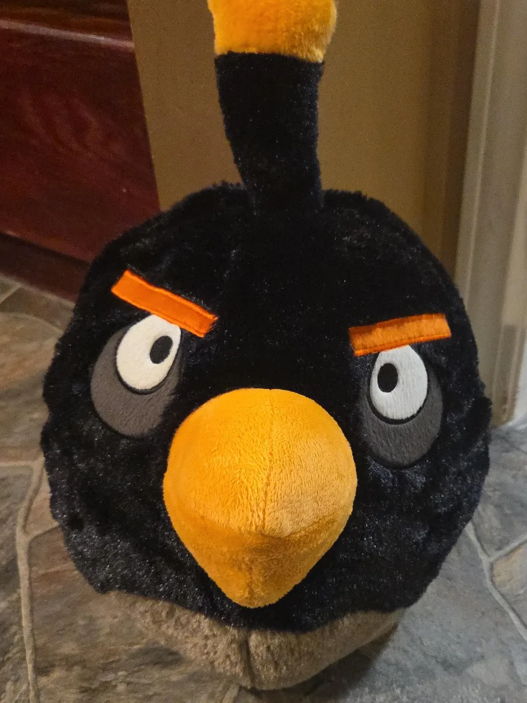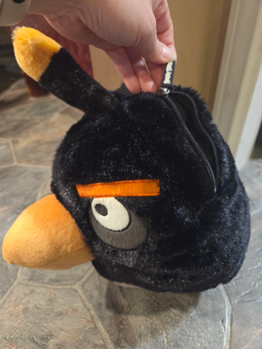 Here's a fun Angry Birds Black Bird plush bag! It's in great condition and ready for a new adventure. Perfect for fans of the game or anyone who loves quirky accessories