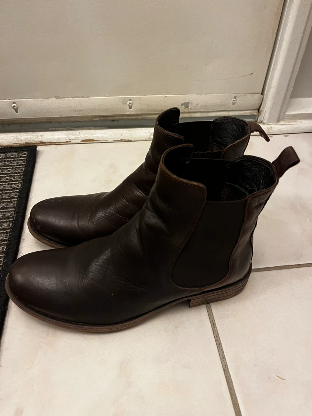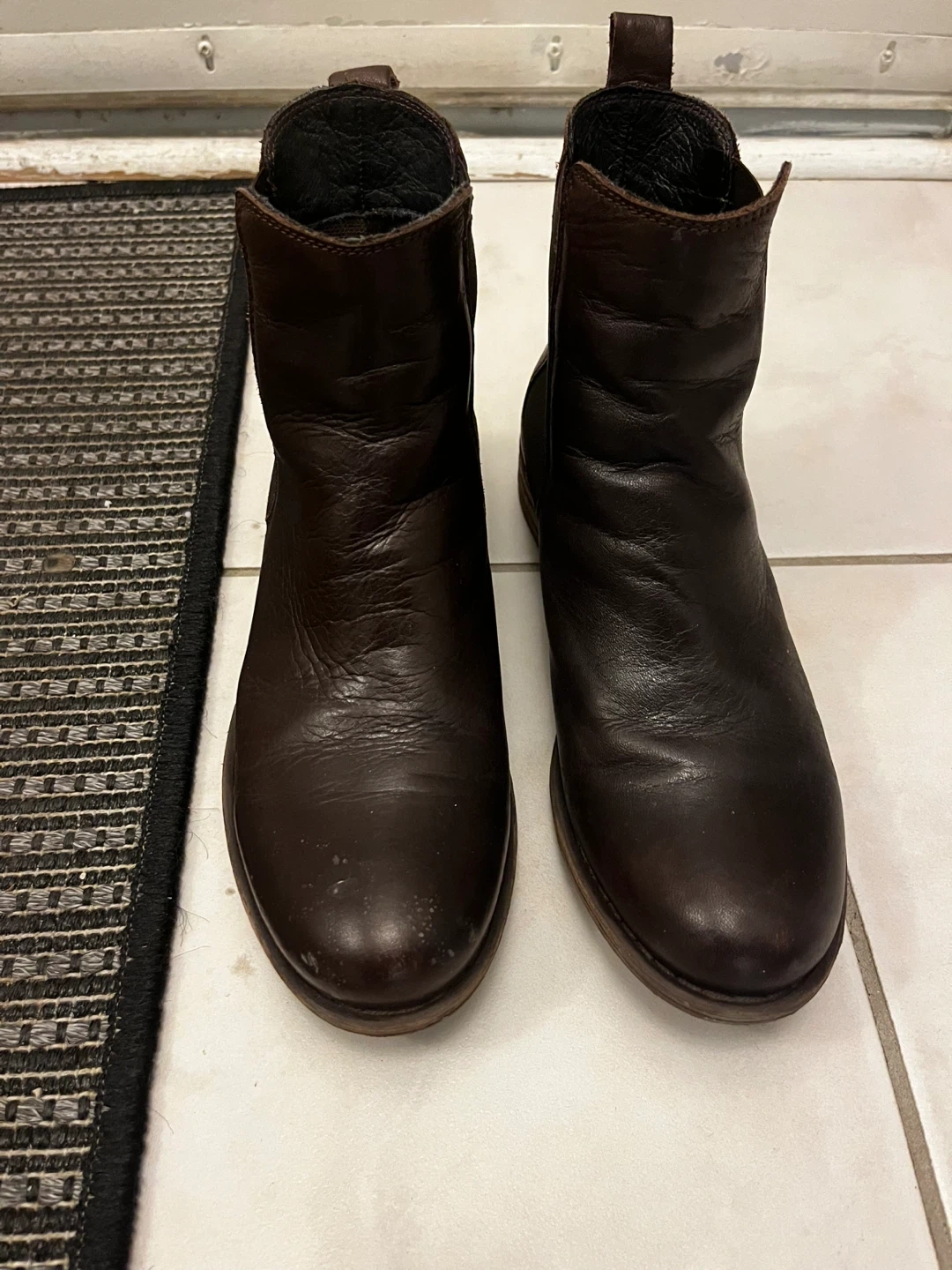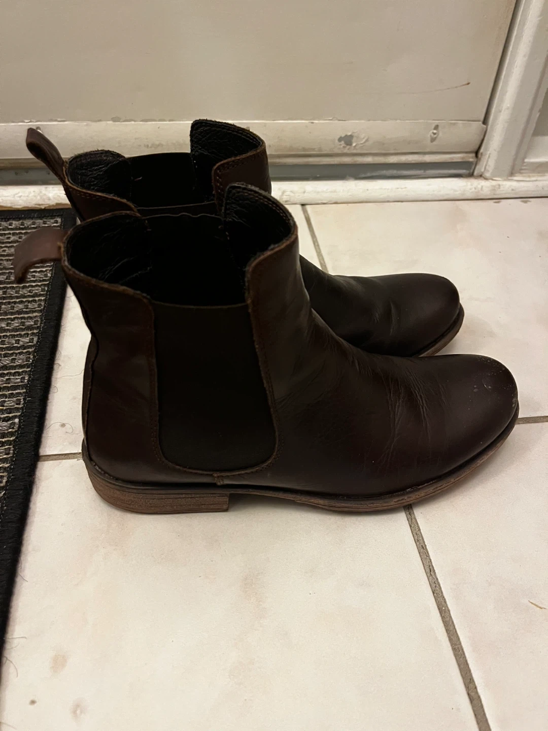 Selling a pair of brown leather Chelsea boots in size 38. They show some signs of wear, but in great condition.