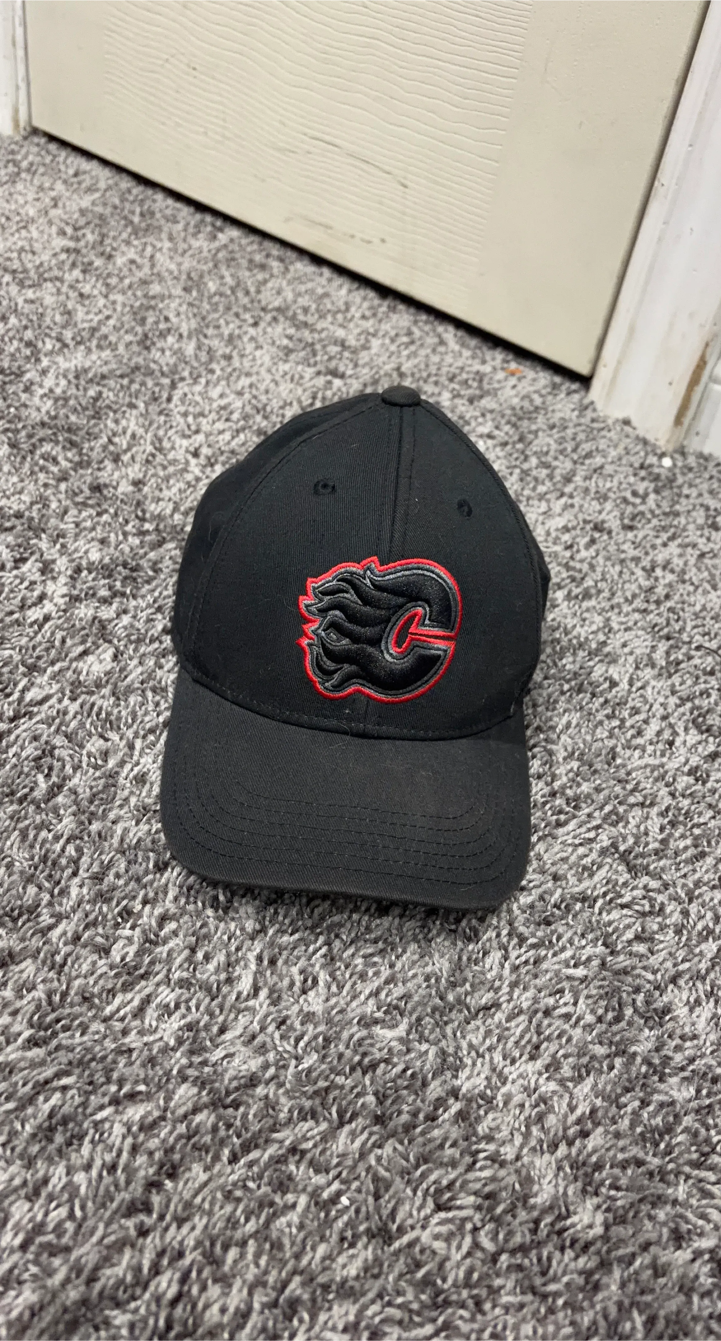 Selling a Calgary Flames baseball cap. It's black with the Flames logo on the front. Great for showing your team spirit!