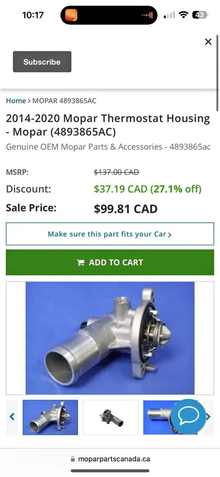 Buy & SellMopar ThermostatMopar Thermostat$60Brand new in unopened packaging. Vehicle applications are pictured.WHERE TO MEETCheck LocationView MapSELLERACBronte100 reviews0 chats·0 favorites·4 viewsSEND CHAT TO SELLERHi AC! I’m interested in your listing.Hi AC! I’m interested in your listing.Get the Karrot app to chatSign In to chat