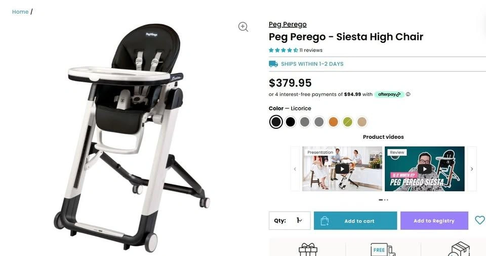 Selling a Peg Perego Siesta high chair in the Licorice colour! It's in great condition and ready for a new family. This chair is super convenient and easy to clean.