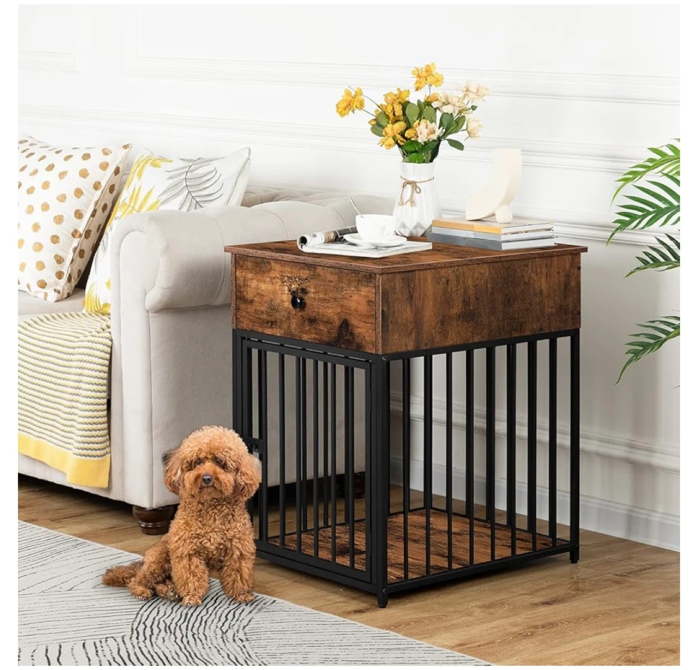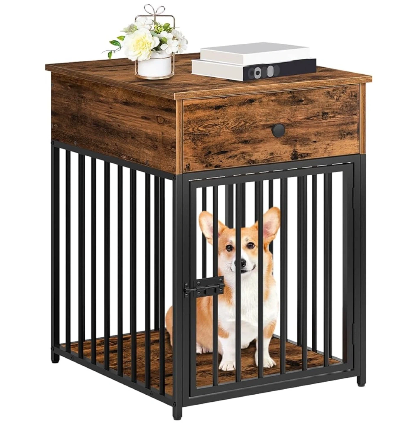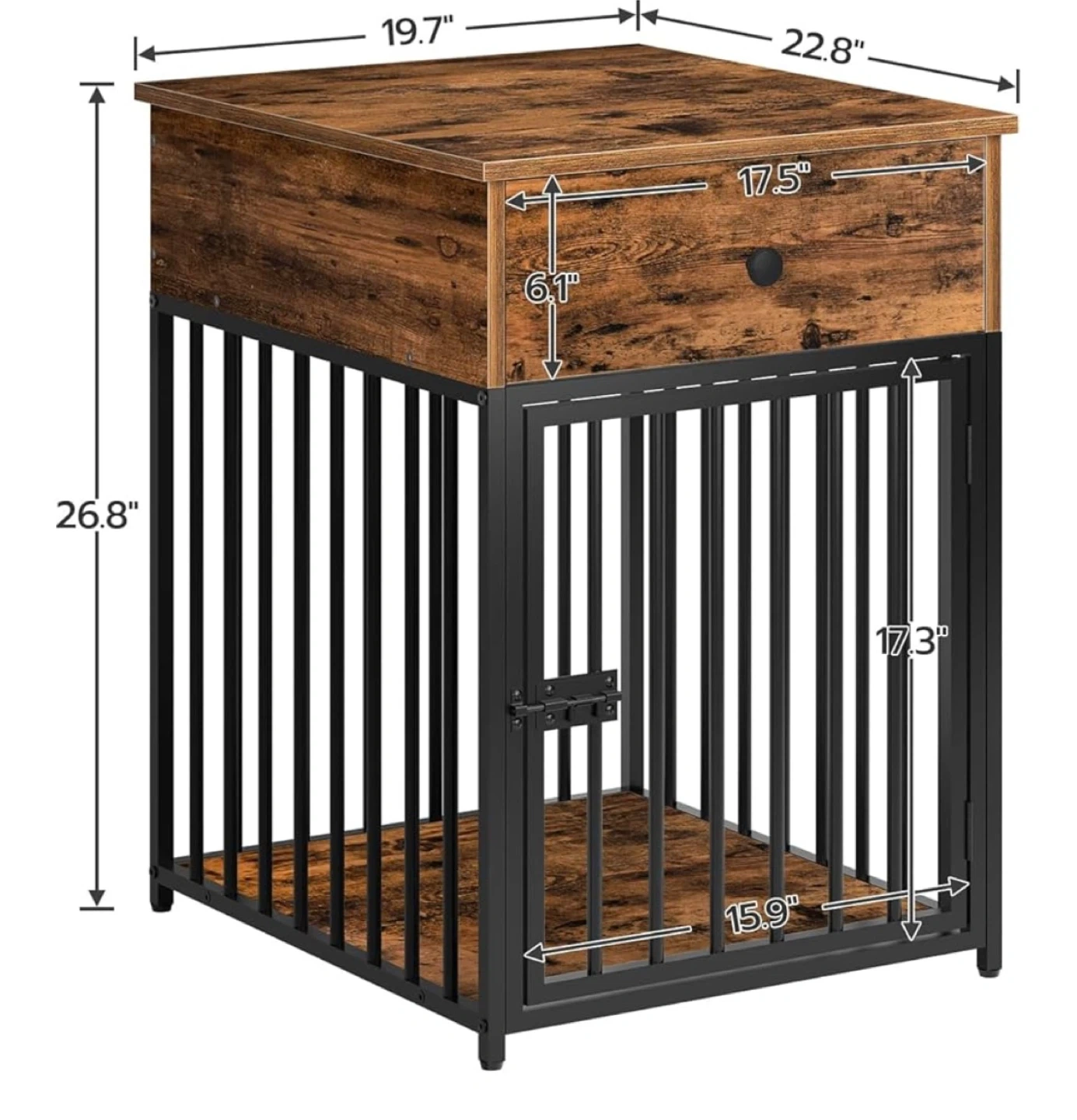 This dog crate end table is a stylish and functional piece of furniture! It features a storage drawer on top, perfect for storing dog toys and supplies. The dimensions are approximately 22.8" x 19.7" x 26.8".