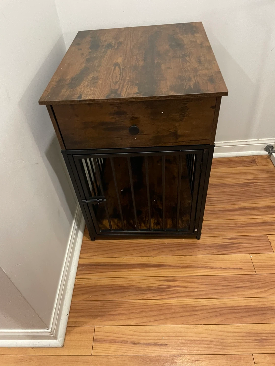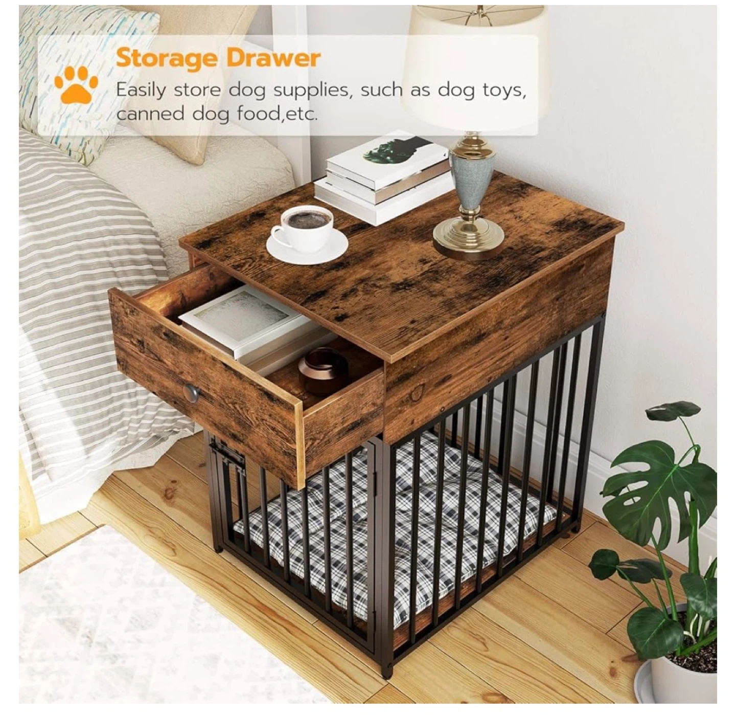 This dog crate end table is a stylish and functional piece of furniture! It features a storage drawer on top, perfect for storing dog toys and supplies. The dimensions are approximately 22.8" x 19.7" x 26.8".