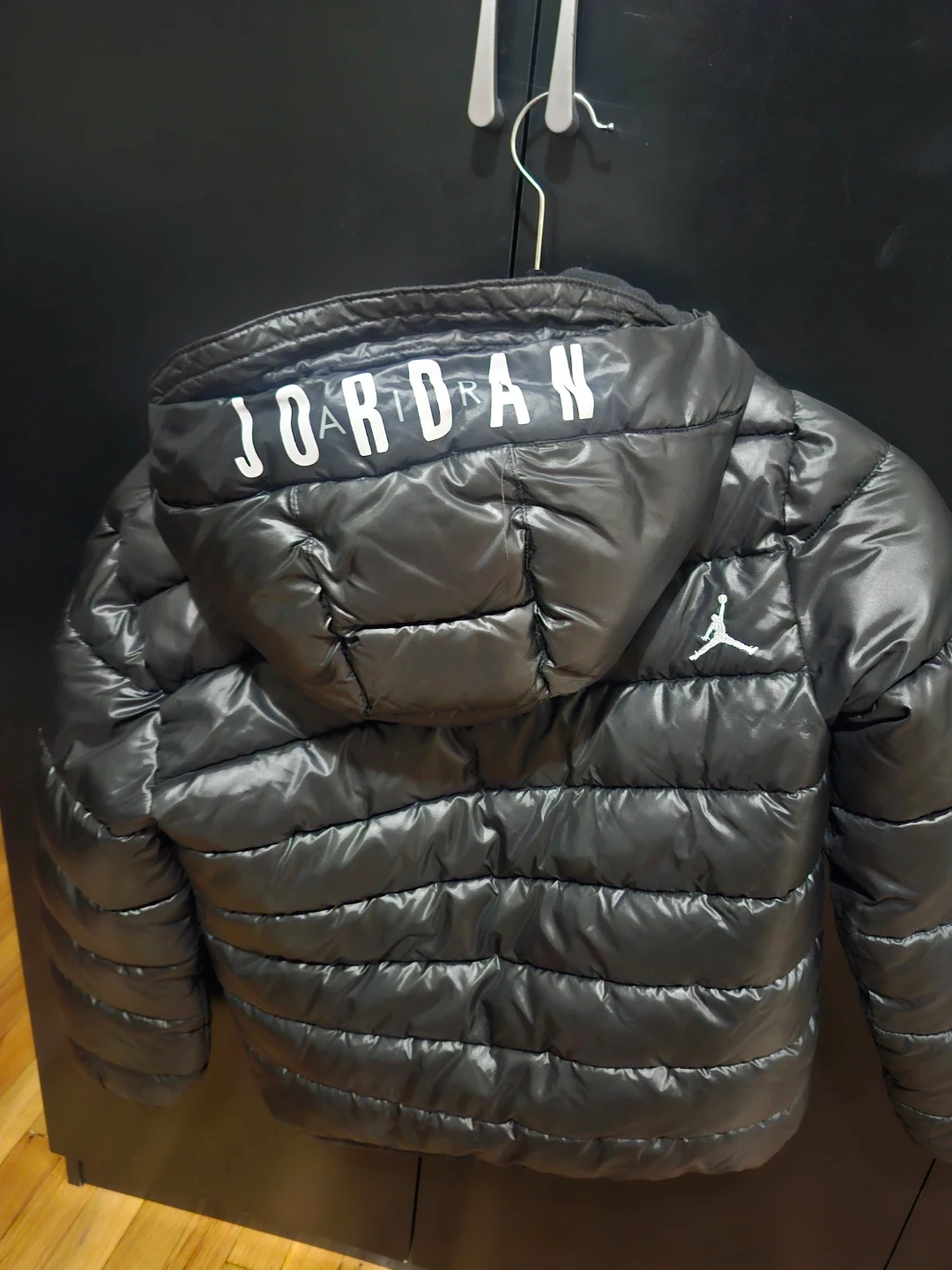 Selling a stylish black Jordan puffer jacket! It features the iconic Jordan logo and a comfortable, padded design. Perfect for staying warm and looking cool during colder weather.