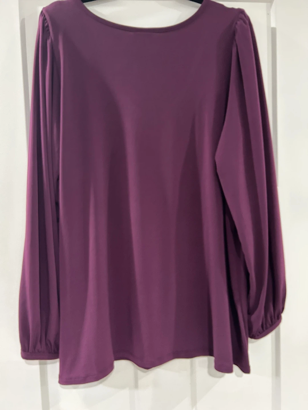 Brand new Torrid long sleeve top in Winter Bloom (deep purple). Features a flattering V-neck, subtle puff shoulders, and elasticized cuffs. Dressy enough for work, comfy for everyday.