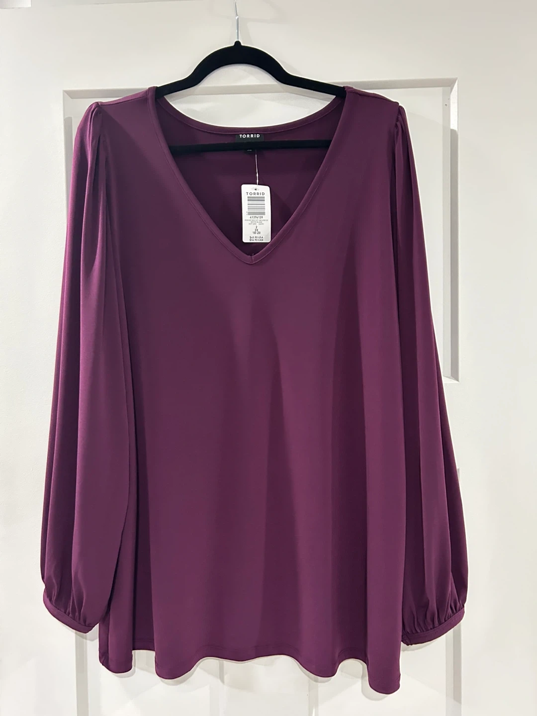 Brand new Torrid long sleeve top in Winter Bloom (deep purple). Features a flattering V-neck, subtle puff shoulders, and elasticized cuffs. Dressy enough for work, comfy for everyday.