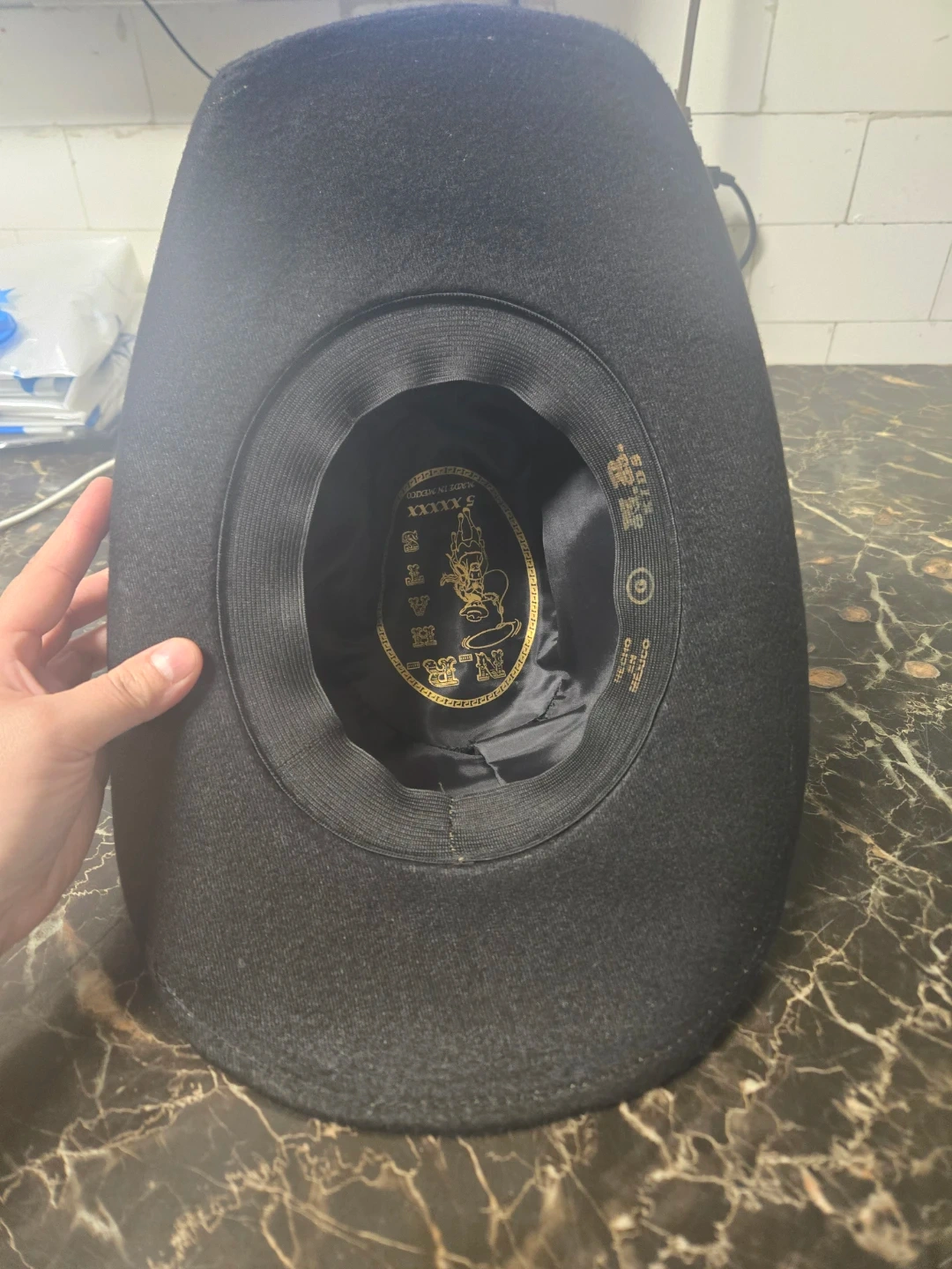 Selling a black Resistol cowboy hat. This stylish hat is perfect for adding a touch of western flair to any outfit. It's in great condition and ready for a new owner!