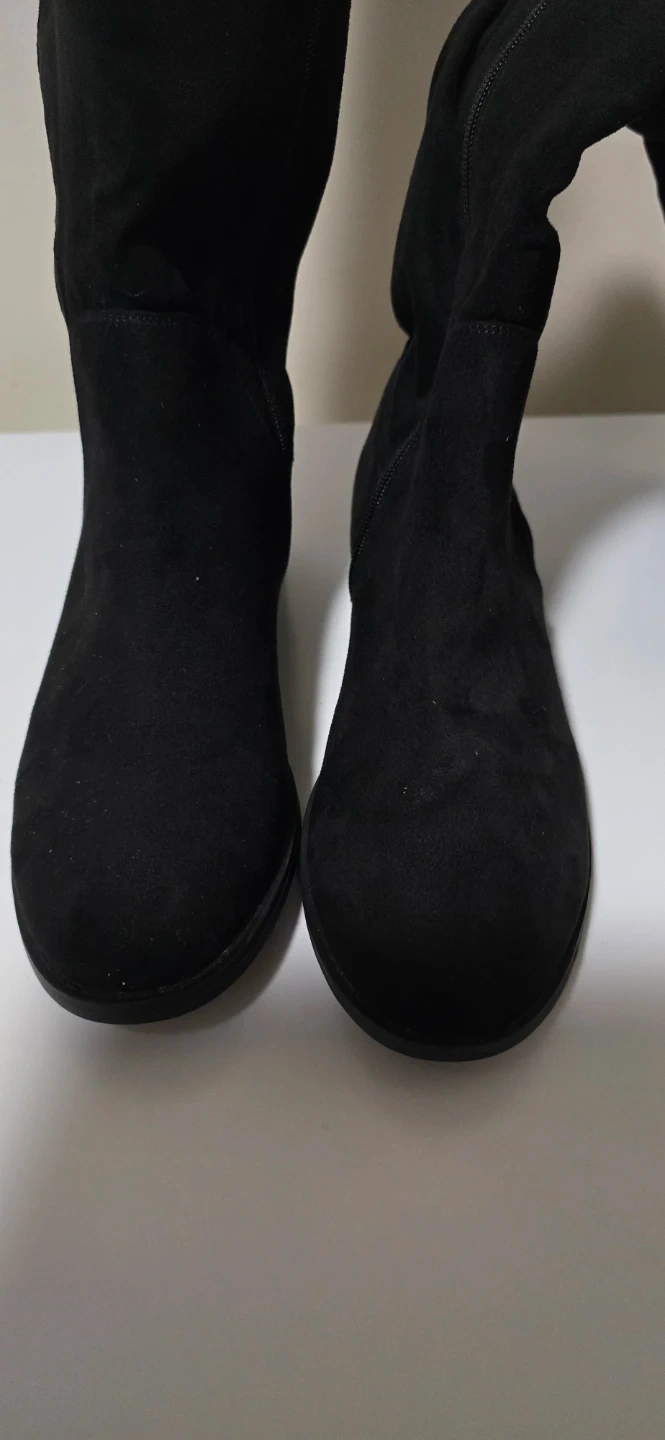 Selling a pair of black over-the-knee boots. They're in great condition and perfect for fall and winter! They feature a sleek design with a comfortable fit. The boots have a zipper on the side for easy wear. Size 9