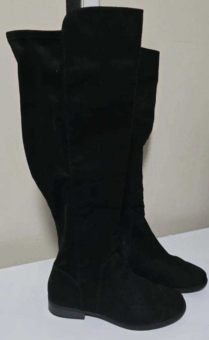 Selling a pair of black over-the-knee boots. They're in great condition and perfect for fall and winter! They feature a sleek design with a comfortable fit. The boots have a zipper on the side for easy wear. Size 9