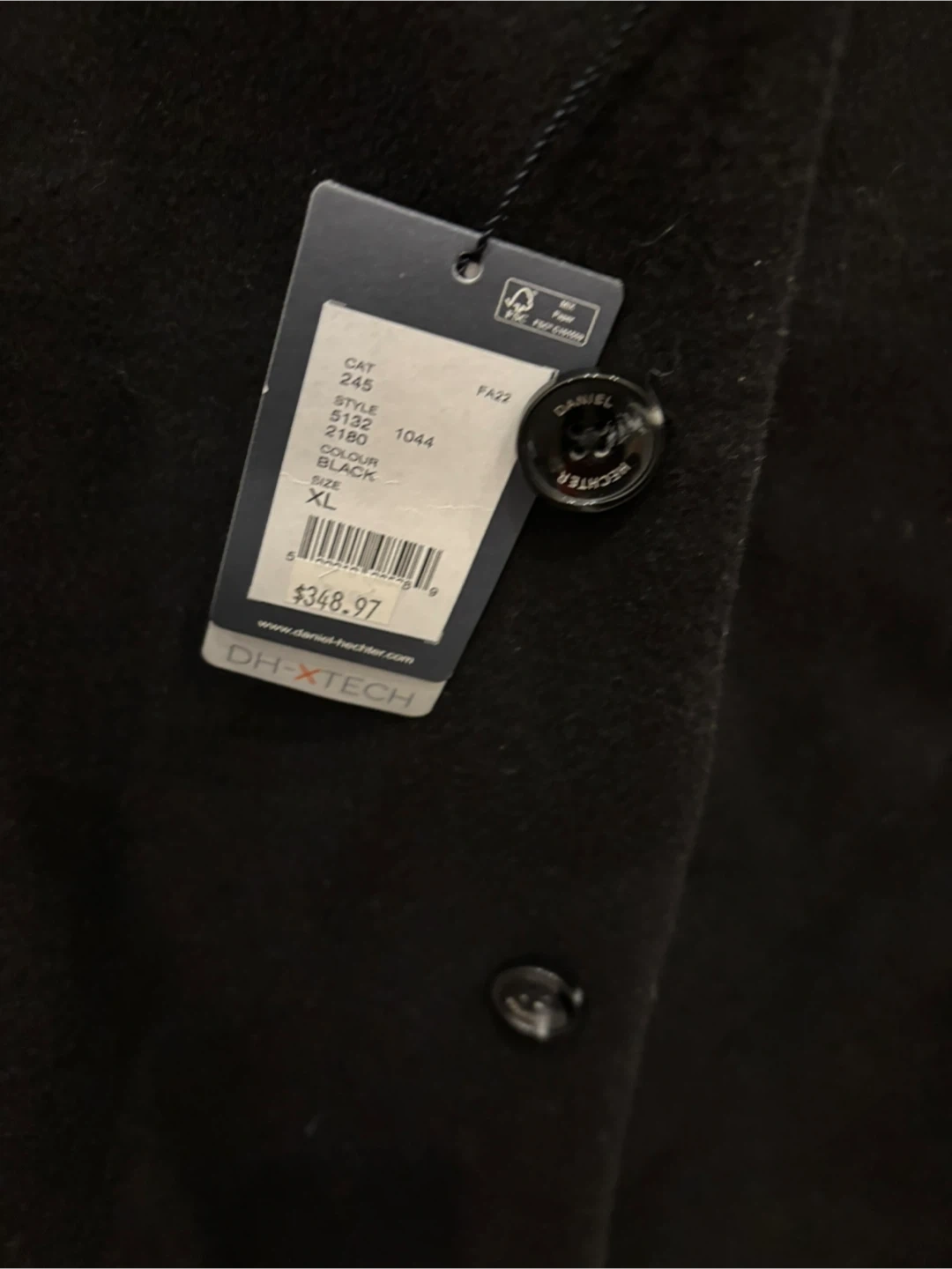 Selling a Daniel Hechter black coat in size XL. It's in excellent condition and originally retailed for $348.97. A stylish and warm addition to your wardrobe!
