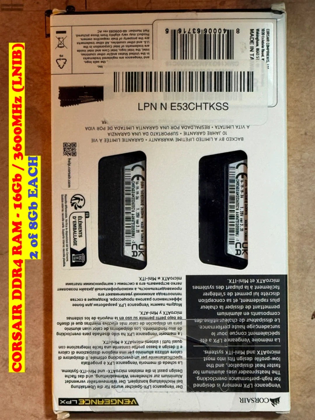 CORSAIR DDR4 RAM (2@8Gb=16Gb) / 3600MHz / CL16 (LNIB)