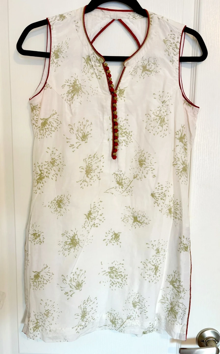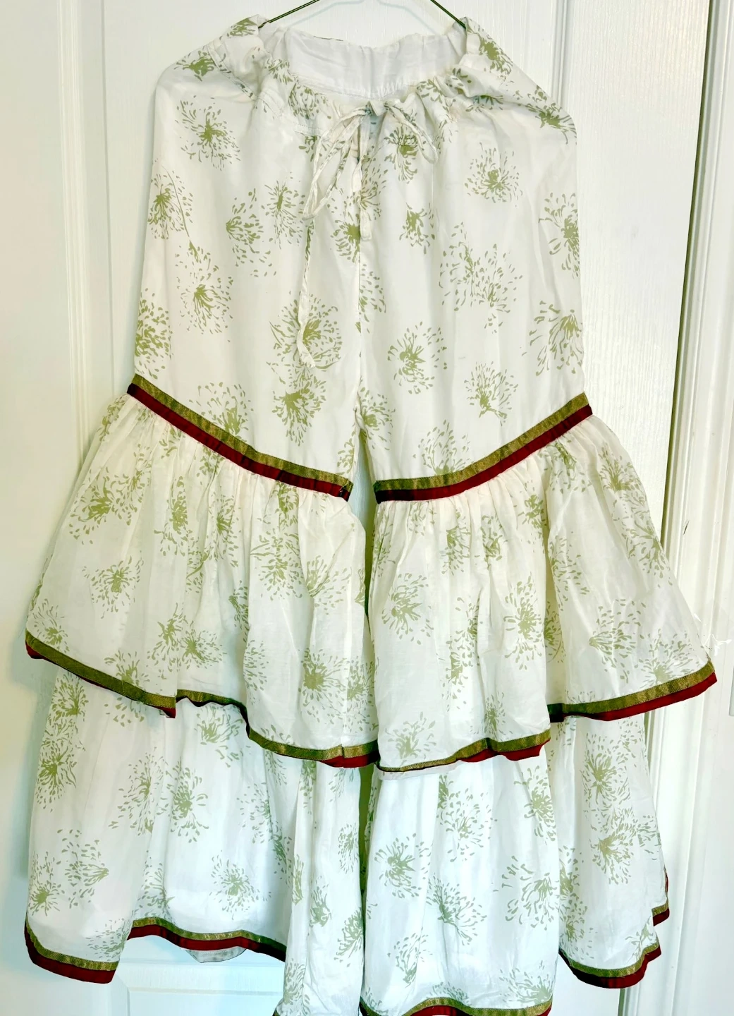 White/ Red Cotton 3 Piece Garara , shirt, and Dupatta set