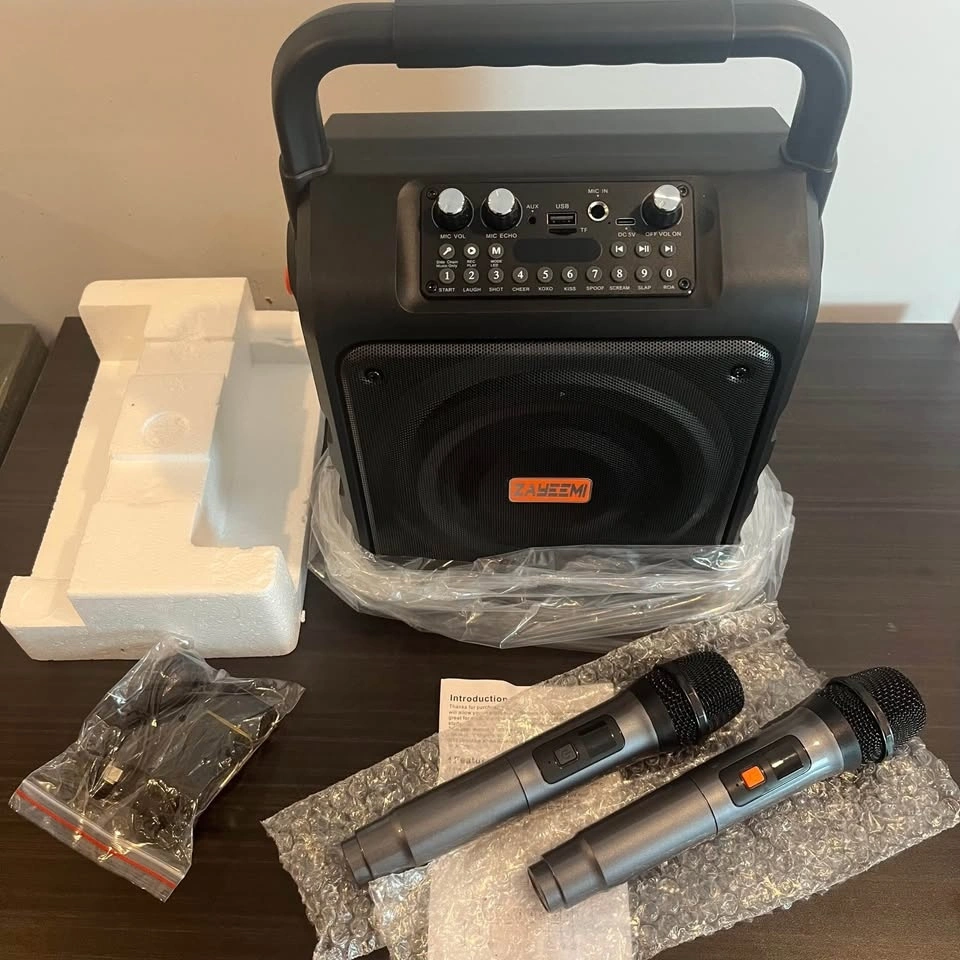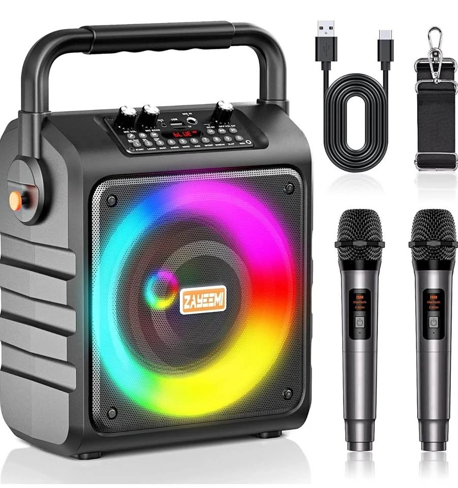 Enjoy high-quality sound with this portable karaoke speaker featuring a 6.5” subwoofer for deep bass. Perfect for delivering mega bass and clear vocals, this speaker is turned to enjoy all different genres of music. High-performance audio driver and an advanced digital signal processor, which can produce an stereo effect with no distorted, and give an all-around epic sound experience for users of all ages.