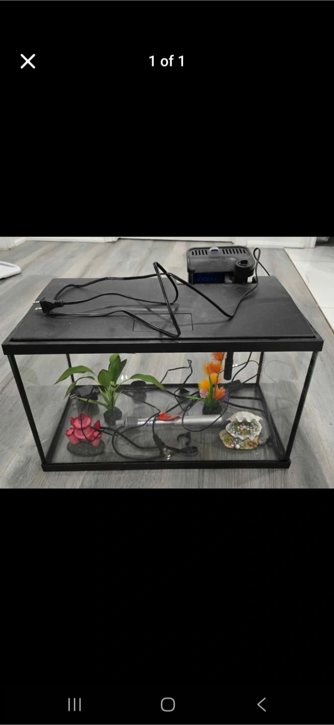 Selling a used fish tank that comes with a filter, heater and decorations. Perfect for a small fishes or other small aquatic pets!