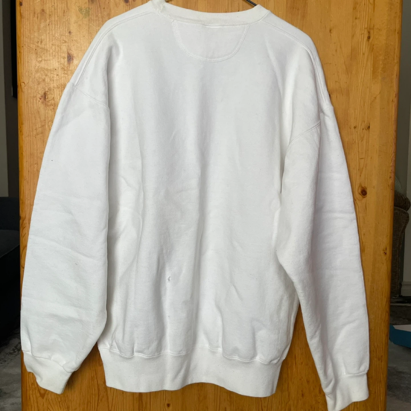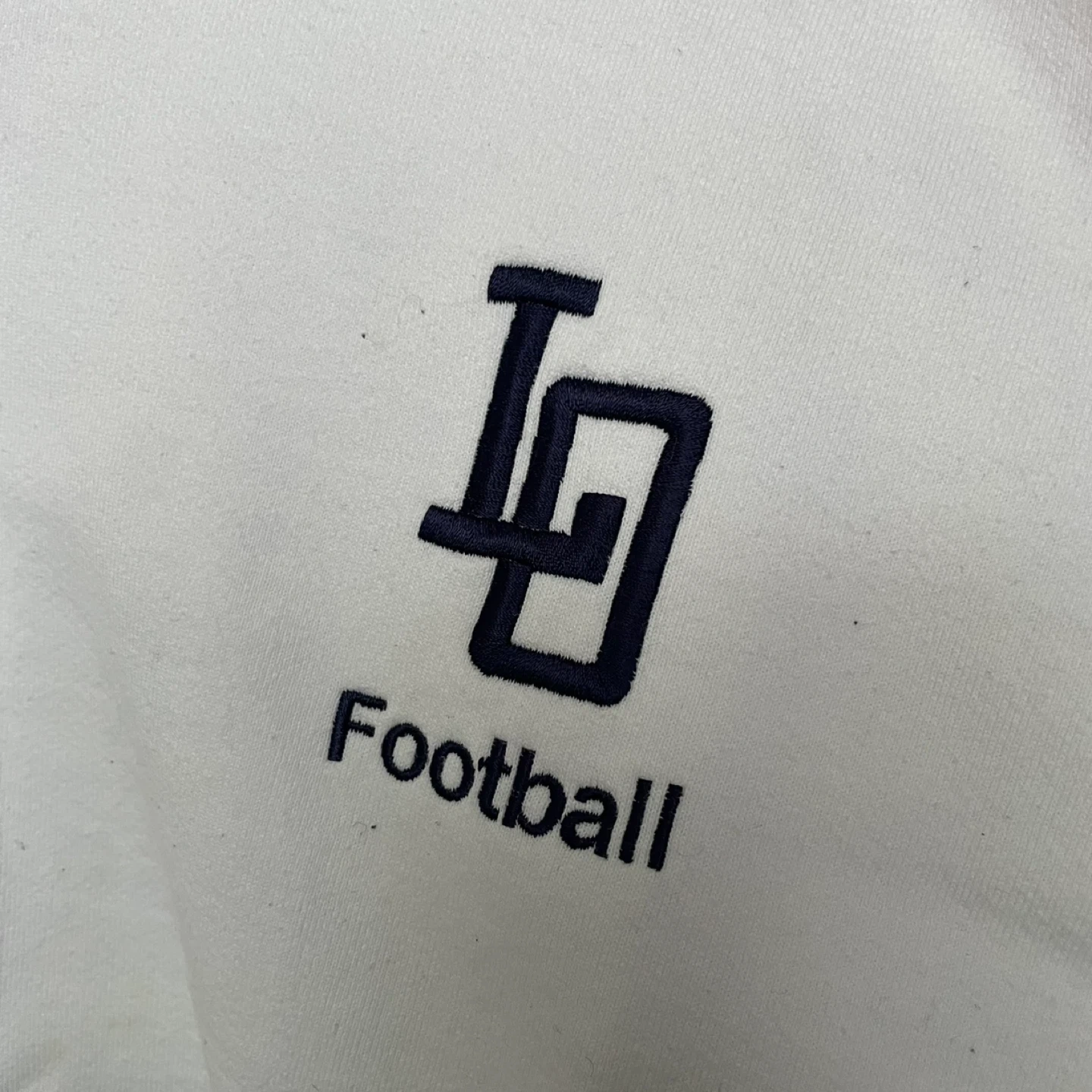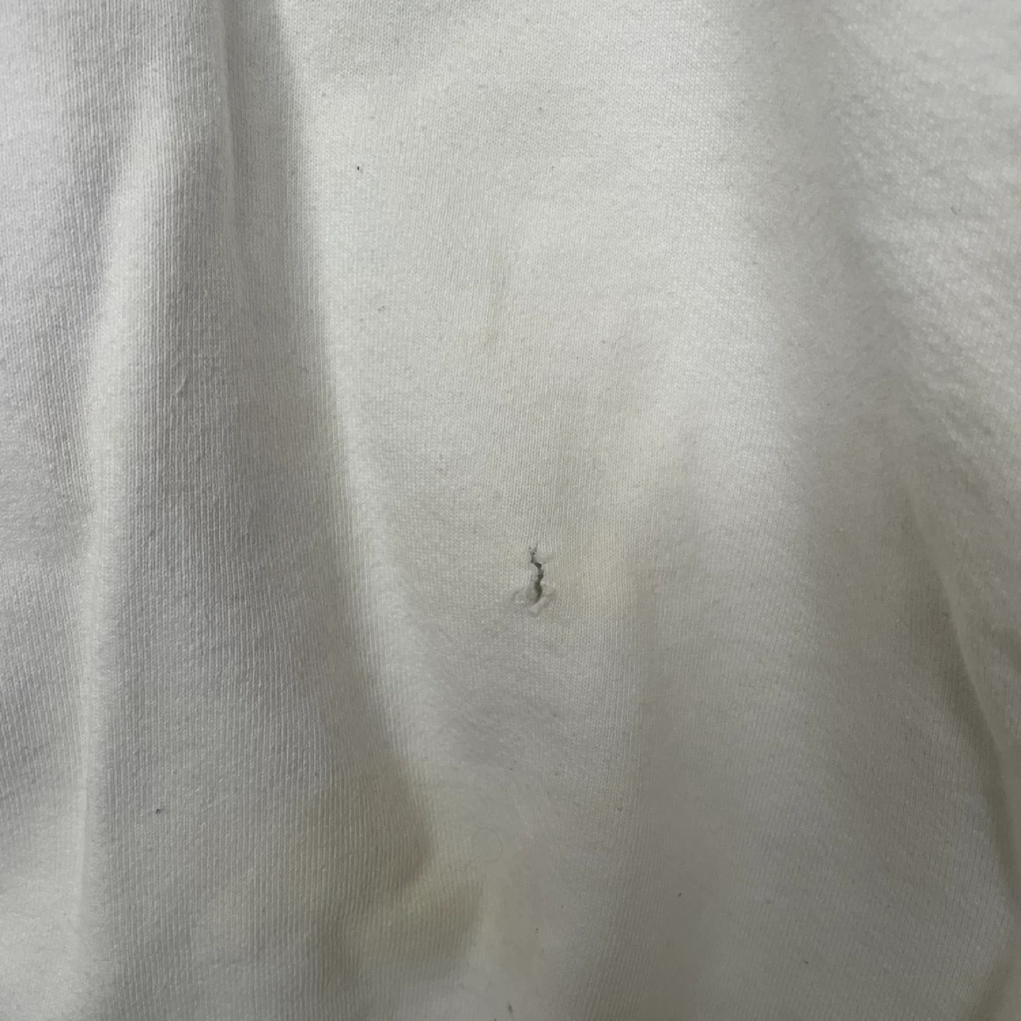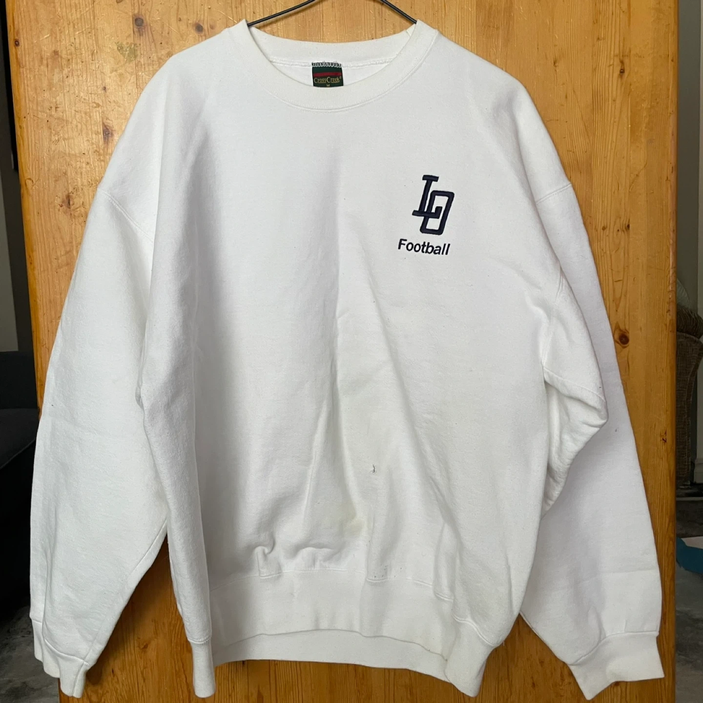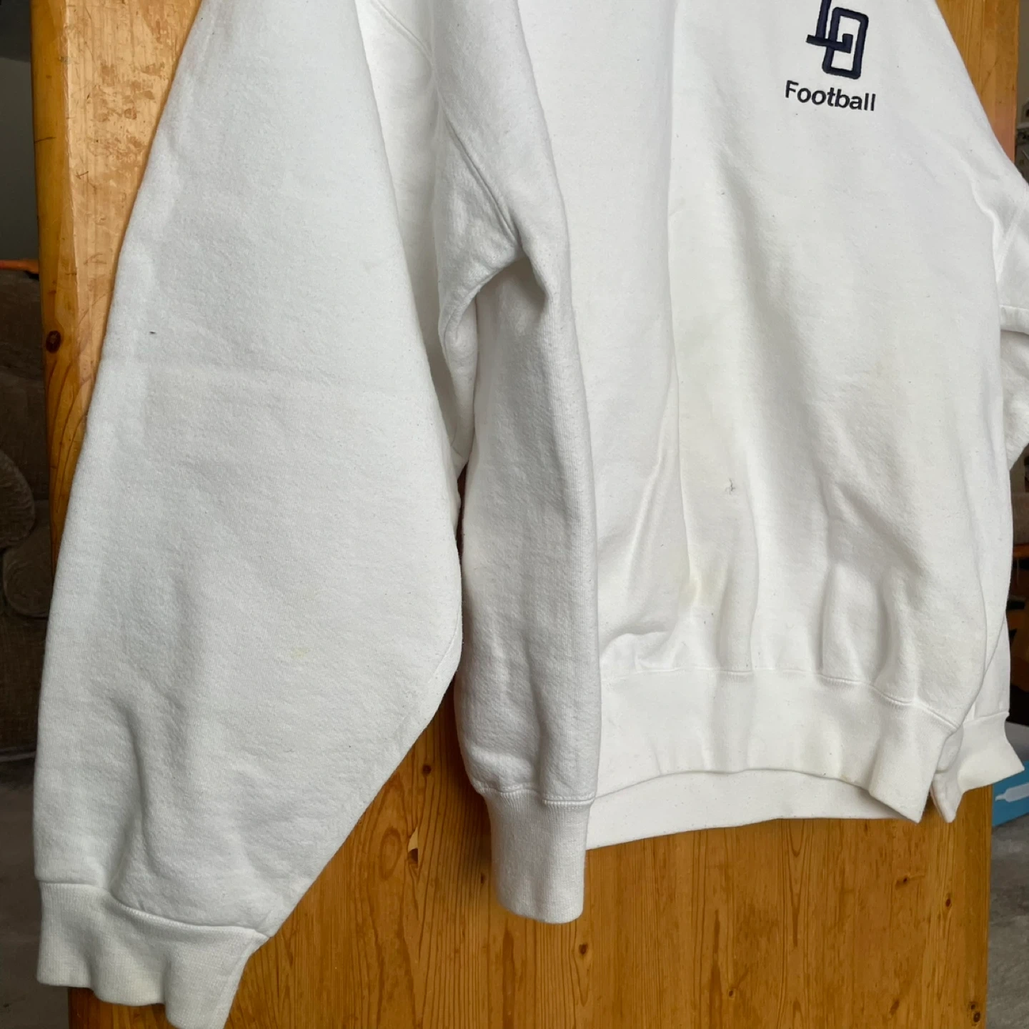 Selling a gently used Cross Creek white sweatshirt. It's a size medium and features a "Football" design. There is a small hole on the front of the sweatshirt, as pictured.