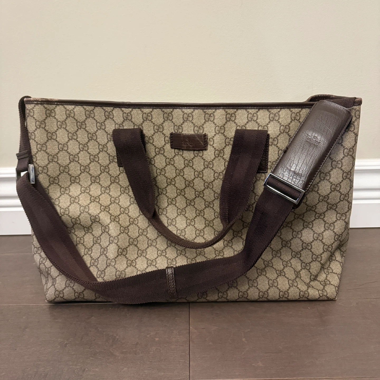 Gucci Two-Way Tote Bag in GG Supreme Canvas and Leather Trim