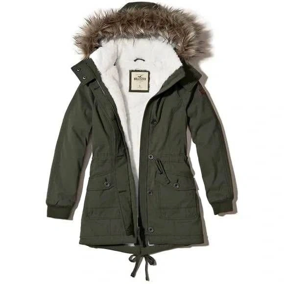 Womens Hollister Water Resistant Fur Parka Jacket