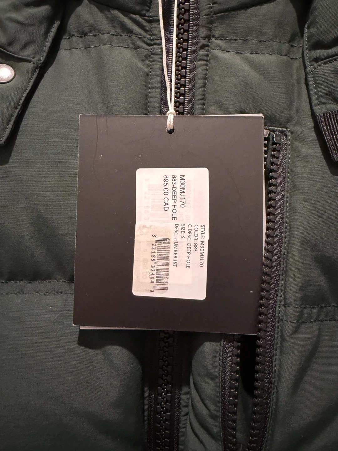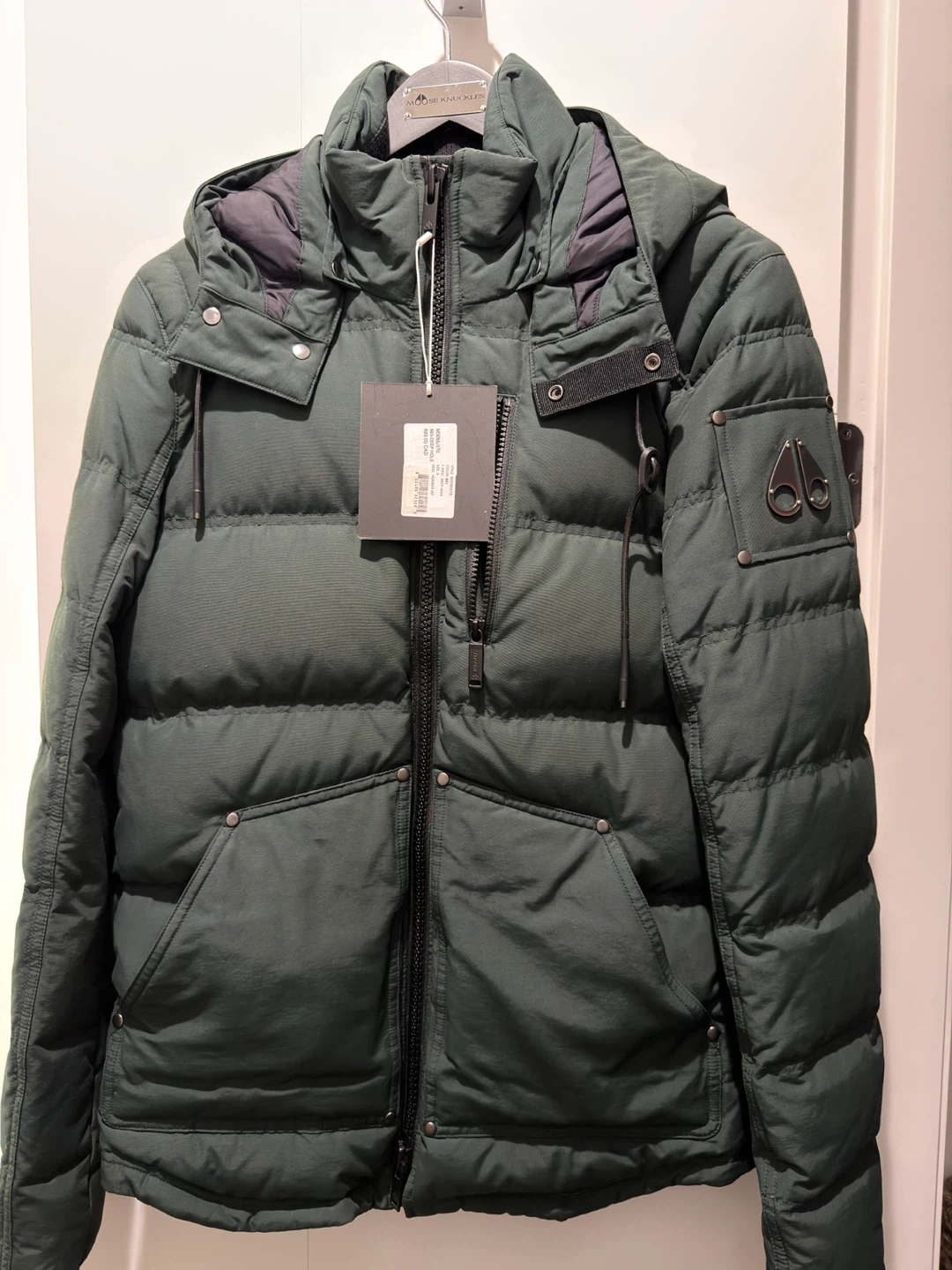 Here's a Moose Knuckles Deep Hole puffer jacket in size small. It's a stylish and warm jacket, perfect for the Canadian winter! The original price was $865 CAD. Paid $1000 incl taxes