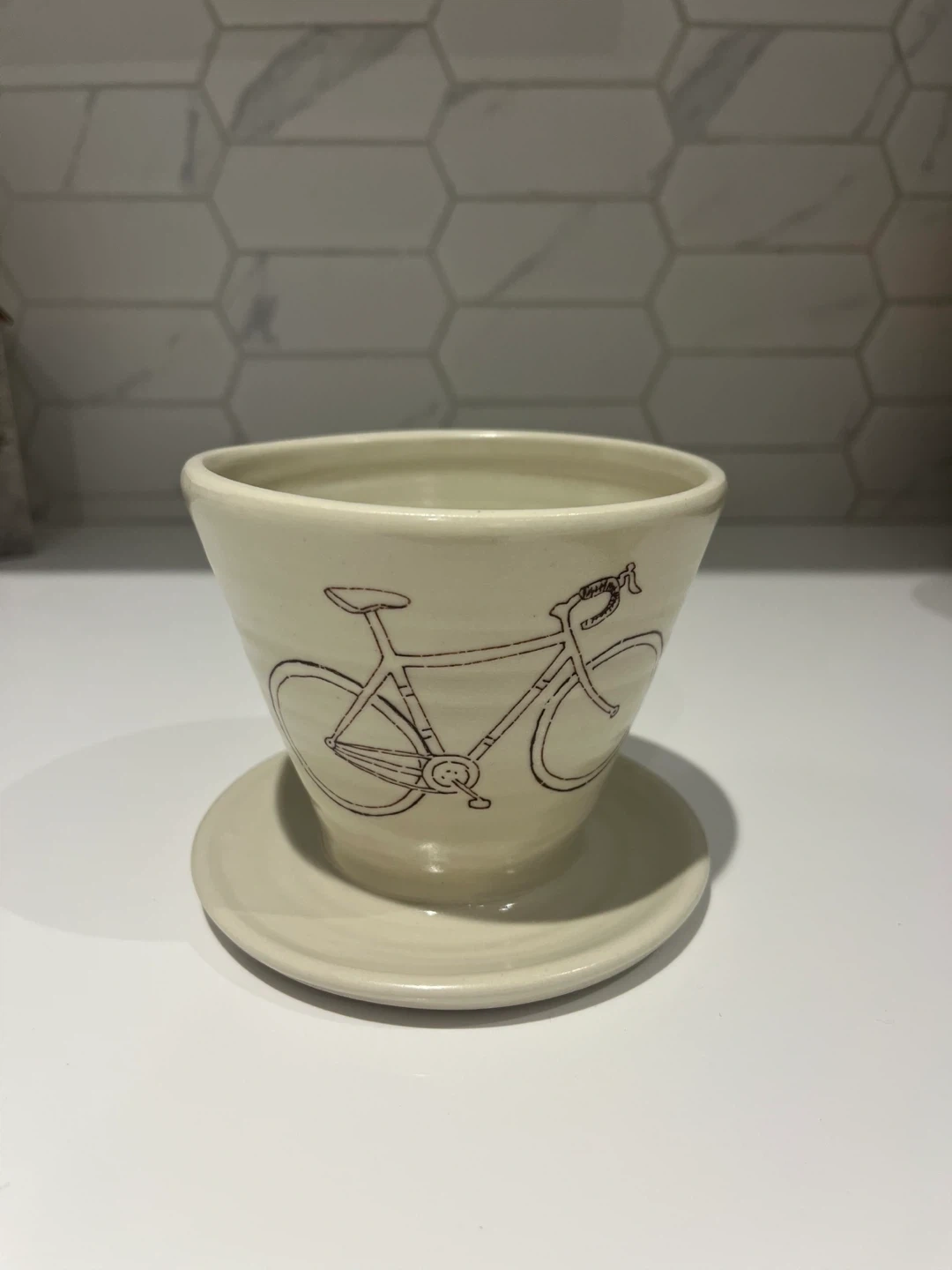 Buy & SellCeramic Coffee Dripper with Bicycle DesignCeramic Coffee Dripper with Bicycle Design$5Selling a cute ceramic coffee dripper with a bicycle design! Good condition!WHERE TO MEETCheck LocationView MapSELLERBrittanyLeslieville38042 reviews1 chats·3 favorites·61 viewsSEND CHAT TO SELLERHi Brittany! I’m interested in your listing.Hi Brittany! I’m interested in your listing.Get the Karrot app to chatSign In to chat