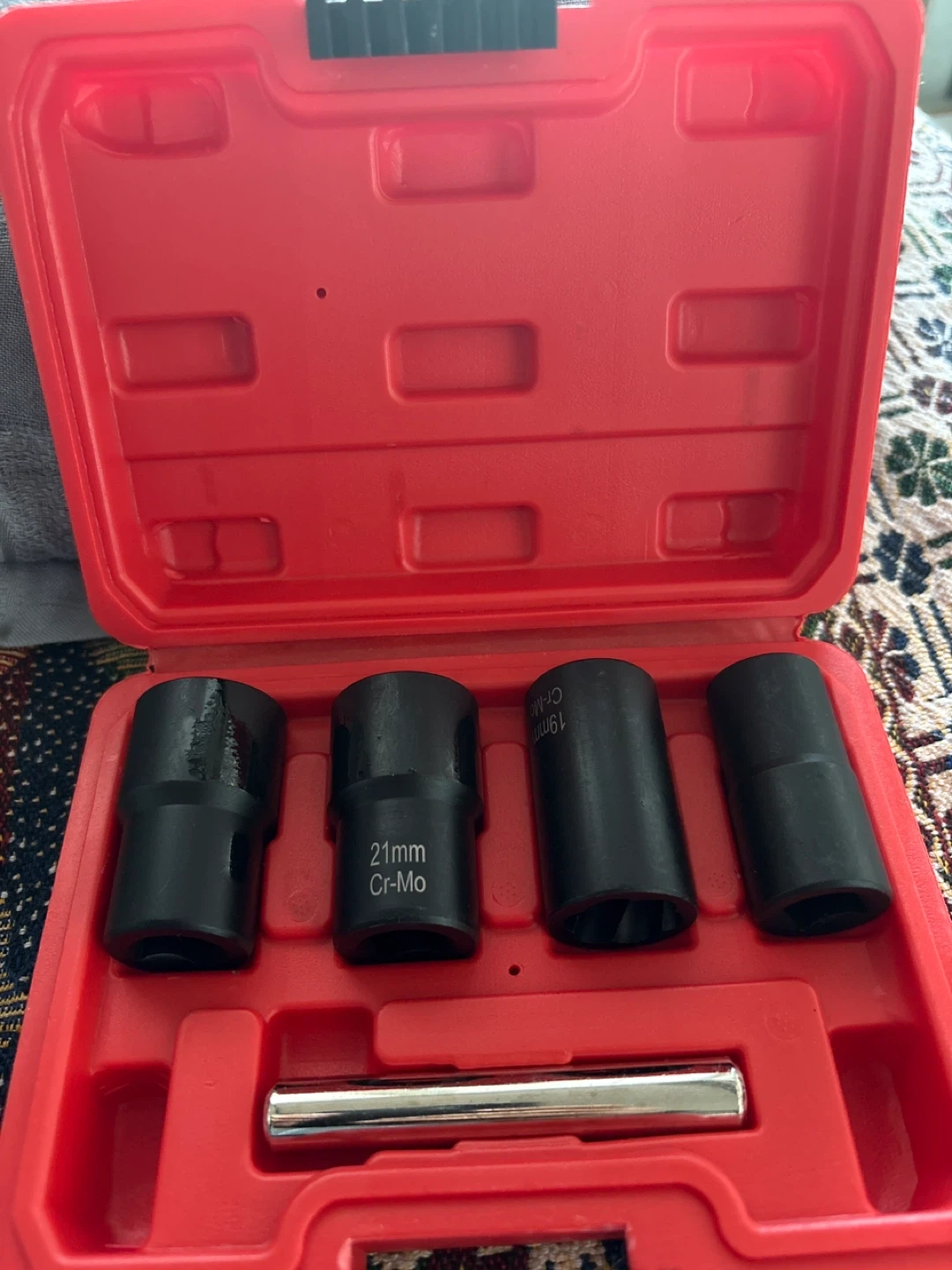 Selling a Greywolf nut removal tool set. It's ideal for removing broken, damaged, or rusted nuts, bolts, screw heads, and studs. After removing, please use the center punch to knock off the nuts, screws, etc, that are biting on the extractor. Comes in a red case with 5 pieces.