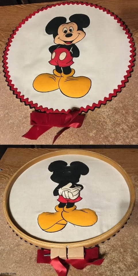 VINTAGE DISNEY MICKEY MOUSE NEEDLEPOINT CROSS STITCH 18” X 20”