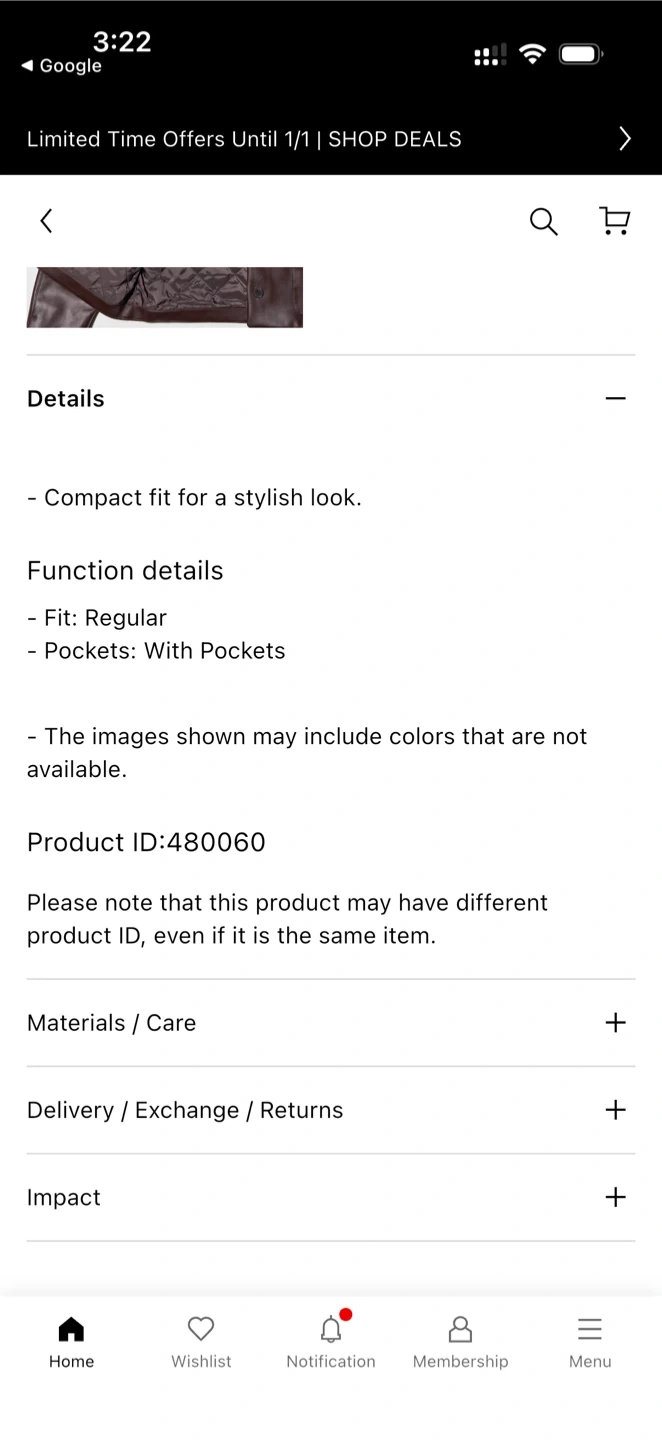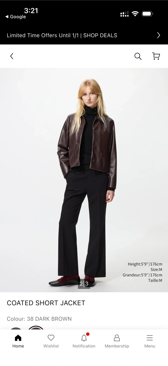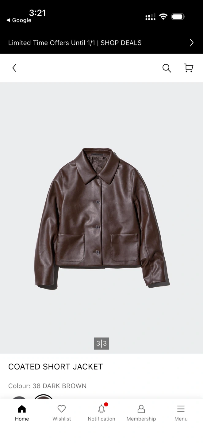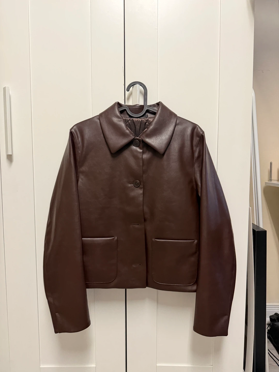 Selling a Uniqlo coated short jacket in dark brown, size medium.