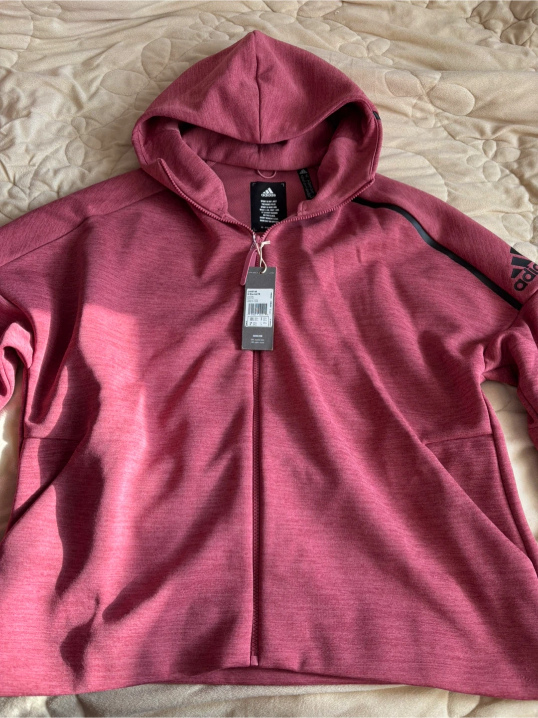 Selling a brand new Adidas W Zne HD FR hoodie in size 2XL! It's a lovely maroon colour and has the classic Adidas stripes on the sleeves. Perfect for workouts or just lounging around