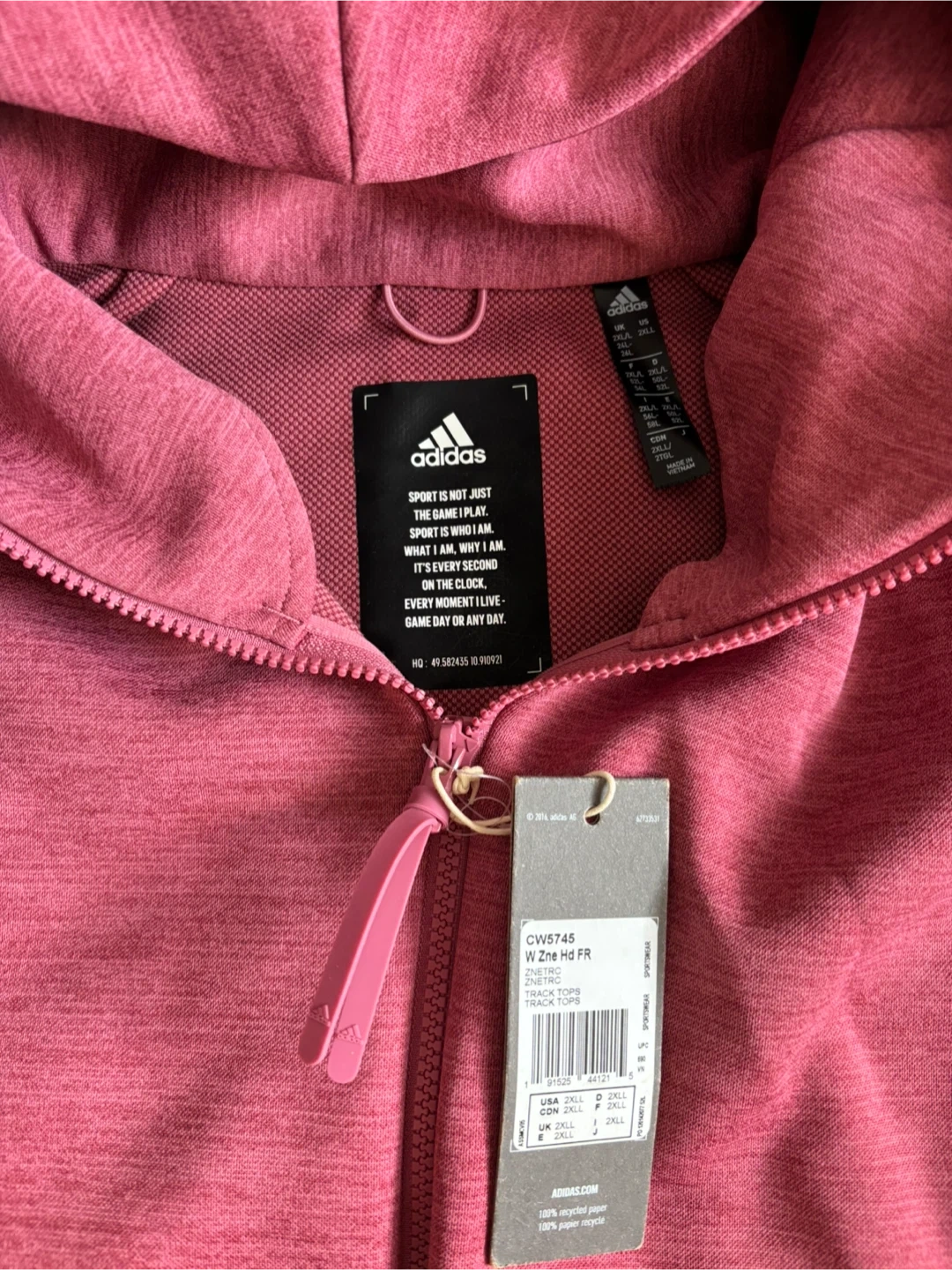 Adidas W Zne HD FR 2XL Maroon Hoodie - New