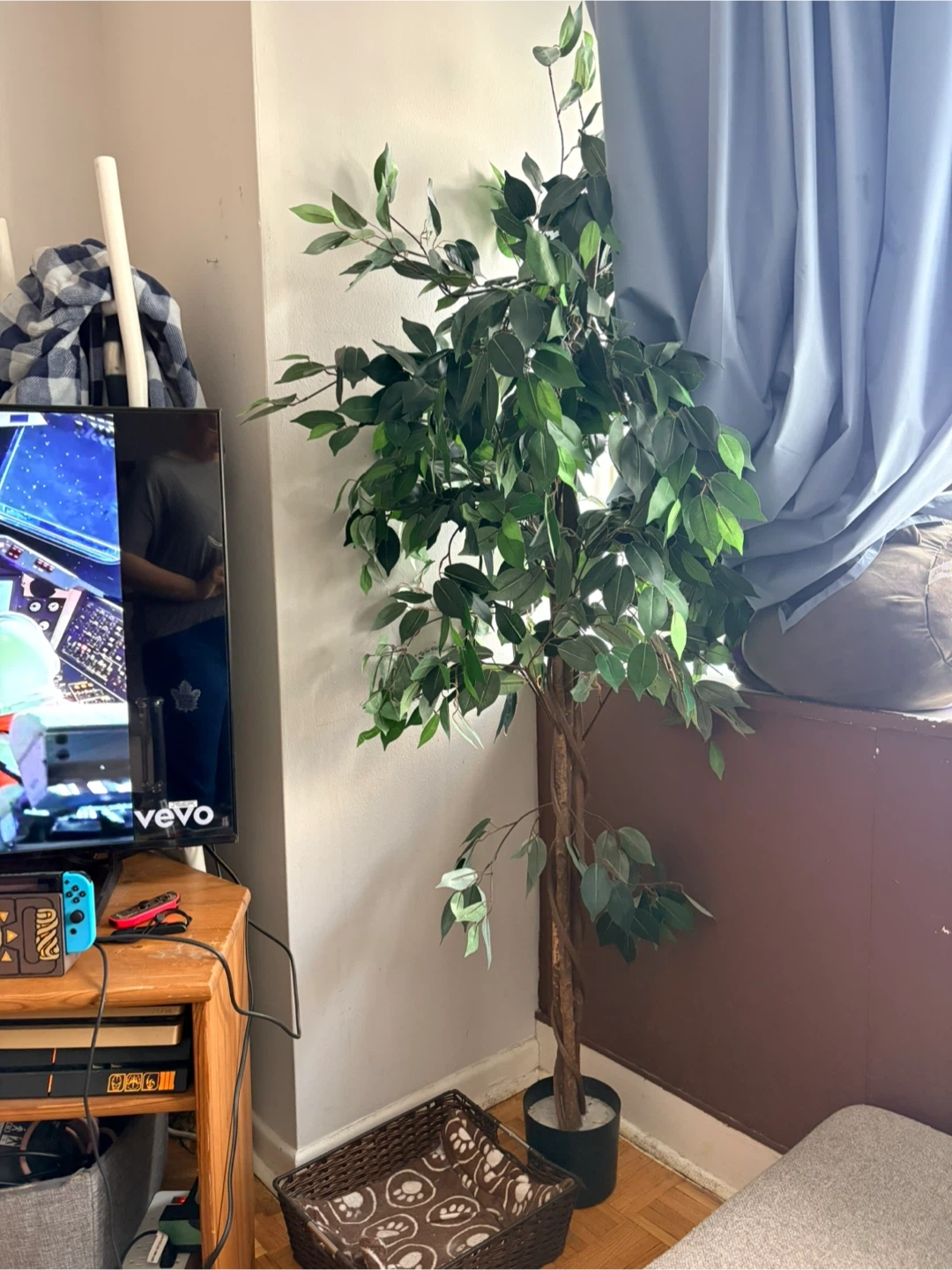 Looking to add a touch of greenery to your space? This faux ficus tree is a great way to brighten up any room. It's in good condition and ready to be a part of your home decor