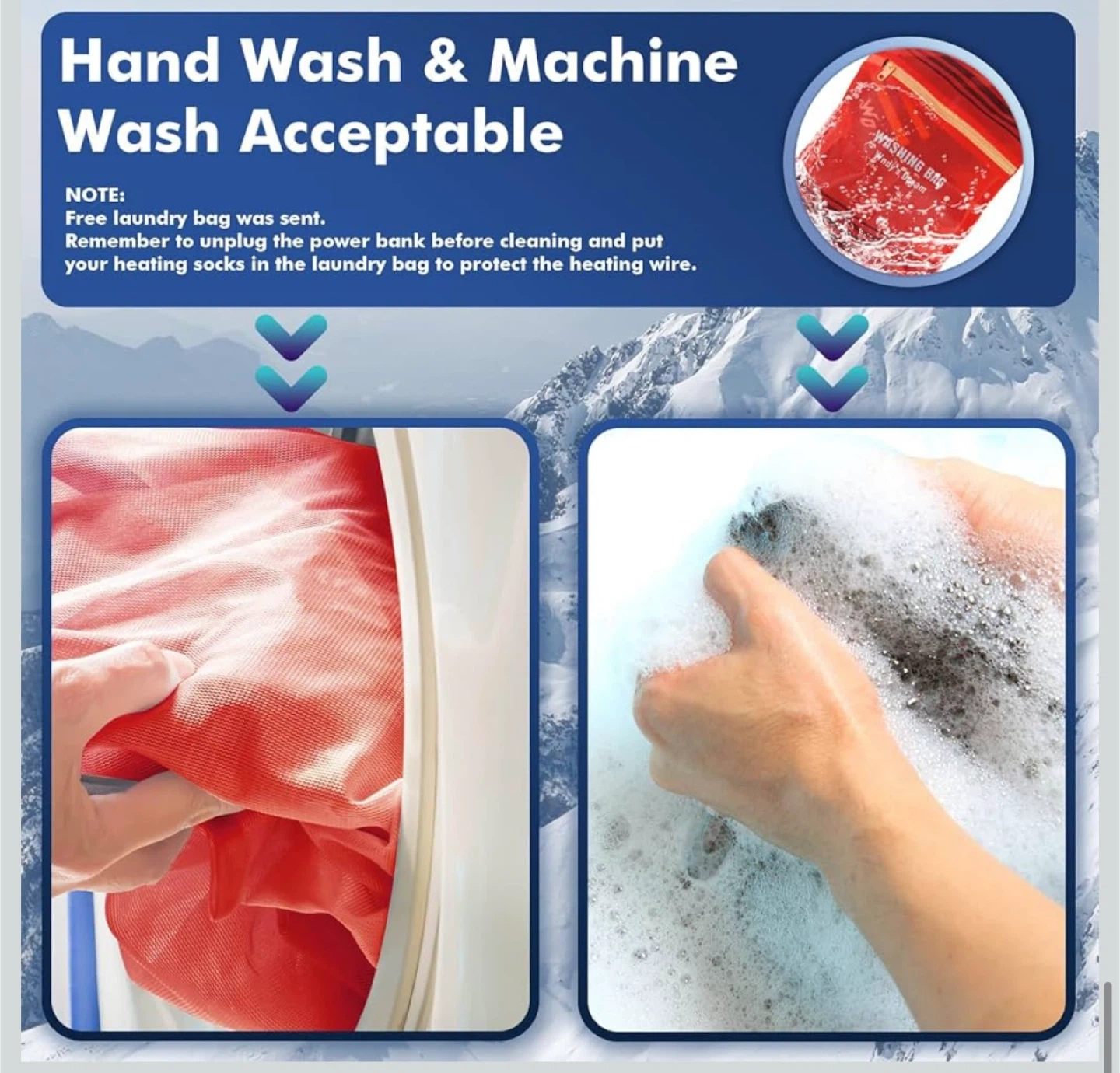 Enjoy winter sports with these comfortable heated socks! They feature 4 levels of temperature settings to keep your feet warm for hours. The large-capacity electric heating ensures up to 8 hours of warmth. They are breathable, prevent falling out, and have a comfortable lining. Perfect for skiing, camping, cycling, and fishing