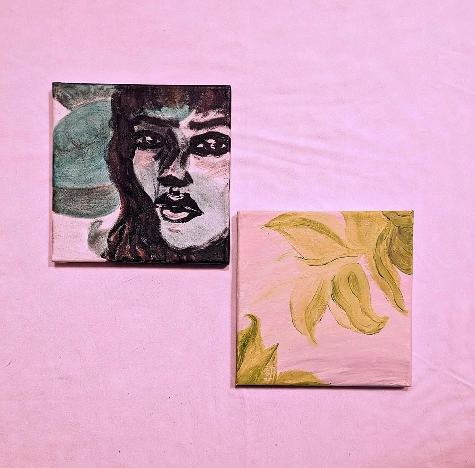 OLD LESSONS and NEW GROWTH , each 8" x 8", acrylic on canvas