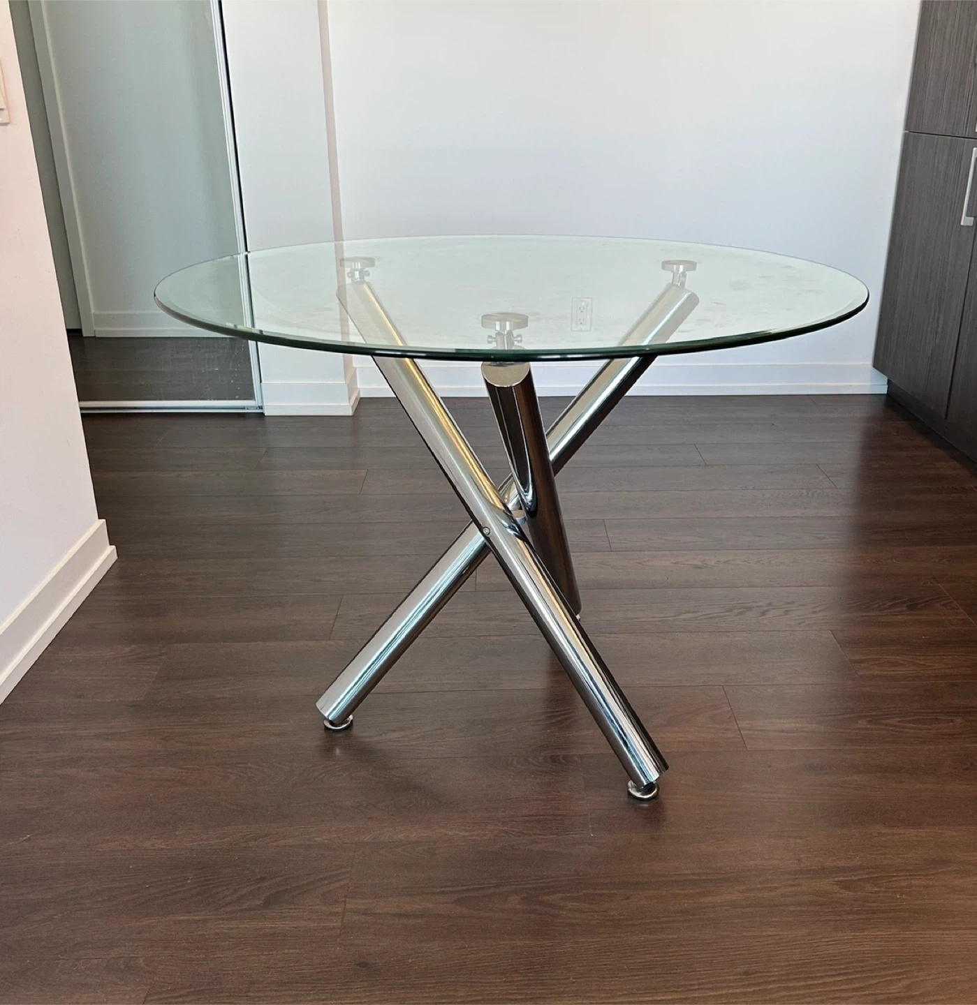 Buy & SellRound Glass Top Dining TableRound Glass Top Dining Table$312Selling a round dining table with a glass top and a unique chrome base. It's in great condition and would be a stylish addition to any dining space!ConditionLike newWHERE TO MEETCheck LocationView MapSELLERverifiedKaylaThe Hill731 review1 chats·3 favorites·37 viewsSEND CHAT TO SELLERHi Kayla! I’m interested in your listing.Hi Kayla! I’m interested in your listing.Get the Karrot app to chatSign In to chat