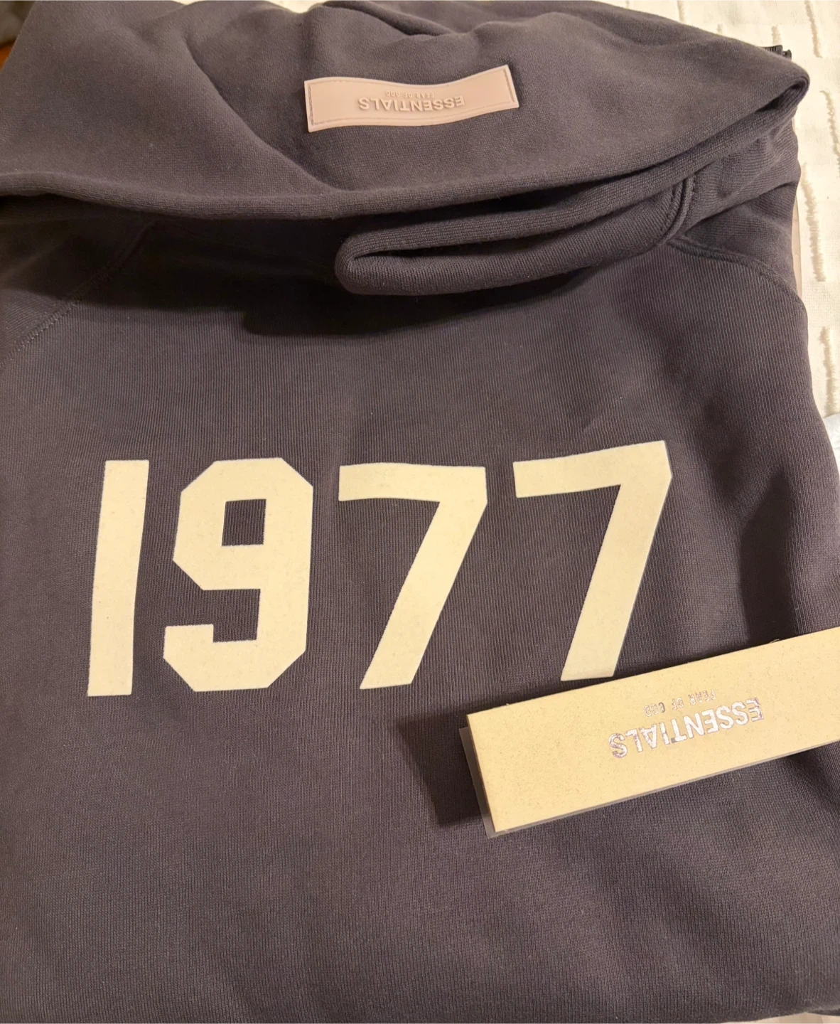 Selling a Fear of God Essentials 1977 hoodie in Iron! It's a size S and brand new . This hoodie features the '1977' design. Perfect for adding a stylish and comfortable piece to your wardrobe!