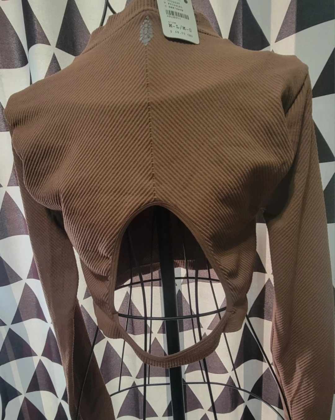 Free People Movement long sleeve top in size medium. It's a brown colour with a unique back cutout. Super comfy!
