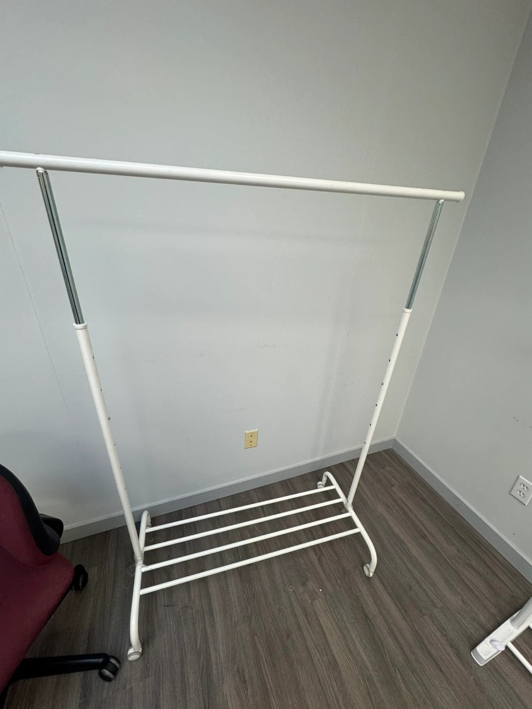 Selling a simple white metal clothing rack. It's perfect for adding extra storage space to your closet or creating a pop-up shop vibe in your room