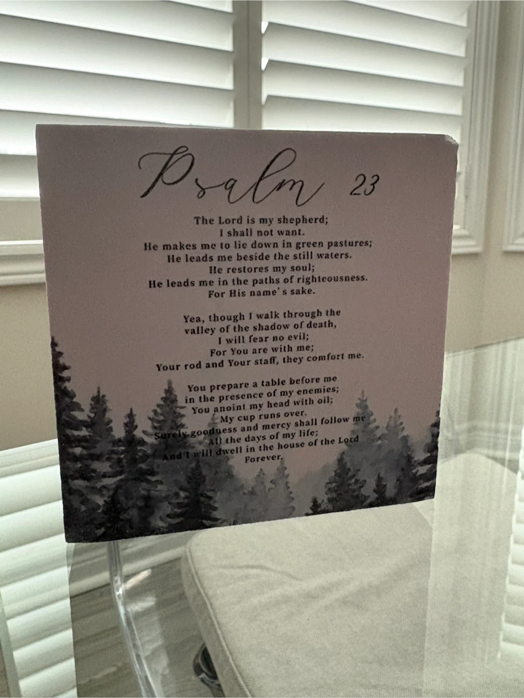 Selling a lovely decorative tile featuring Psalm 23. It's in great condition and would make a beautiful addition to any room!