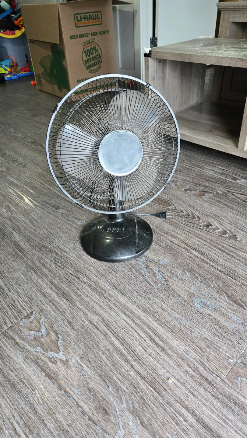 Selling a black table fan. It's a bit dusty, as you can see in the pictures, but will be cleaned properly. 3 fan speed settings.