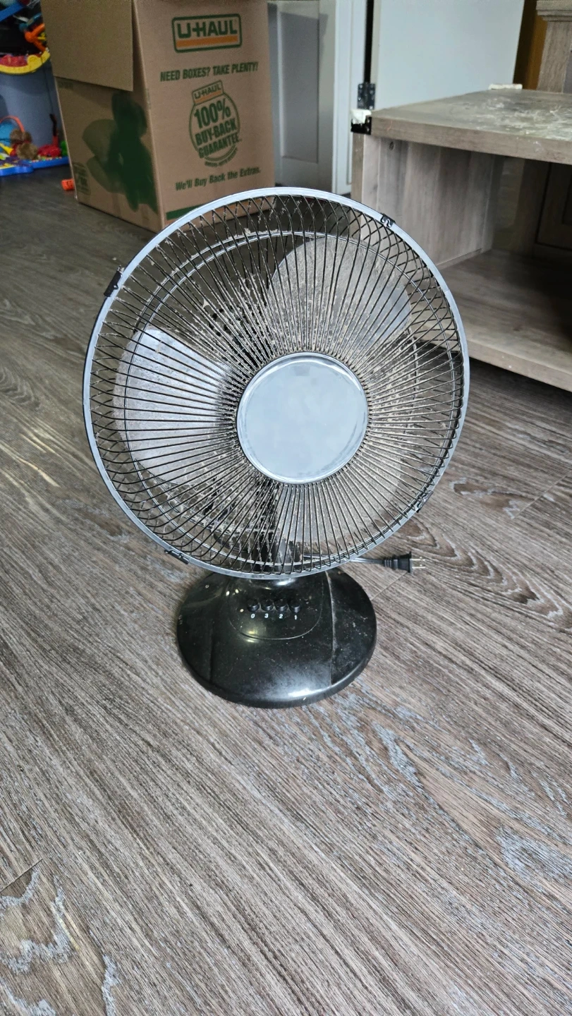 Selling a black table fan. It's a bit dusty, as you can see in the pictures, but will be cleaned properly. 3 fan speed settings.