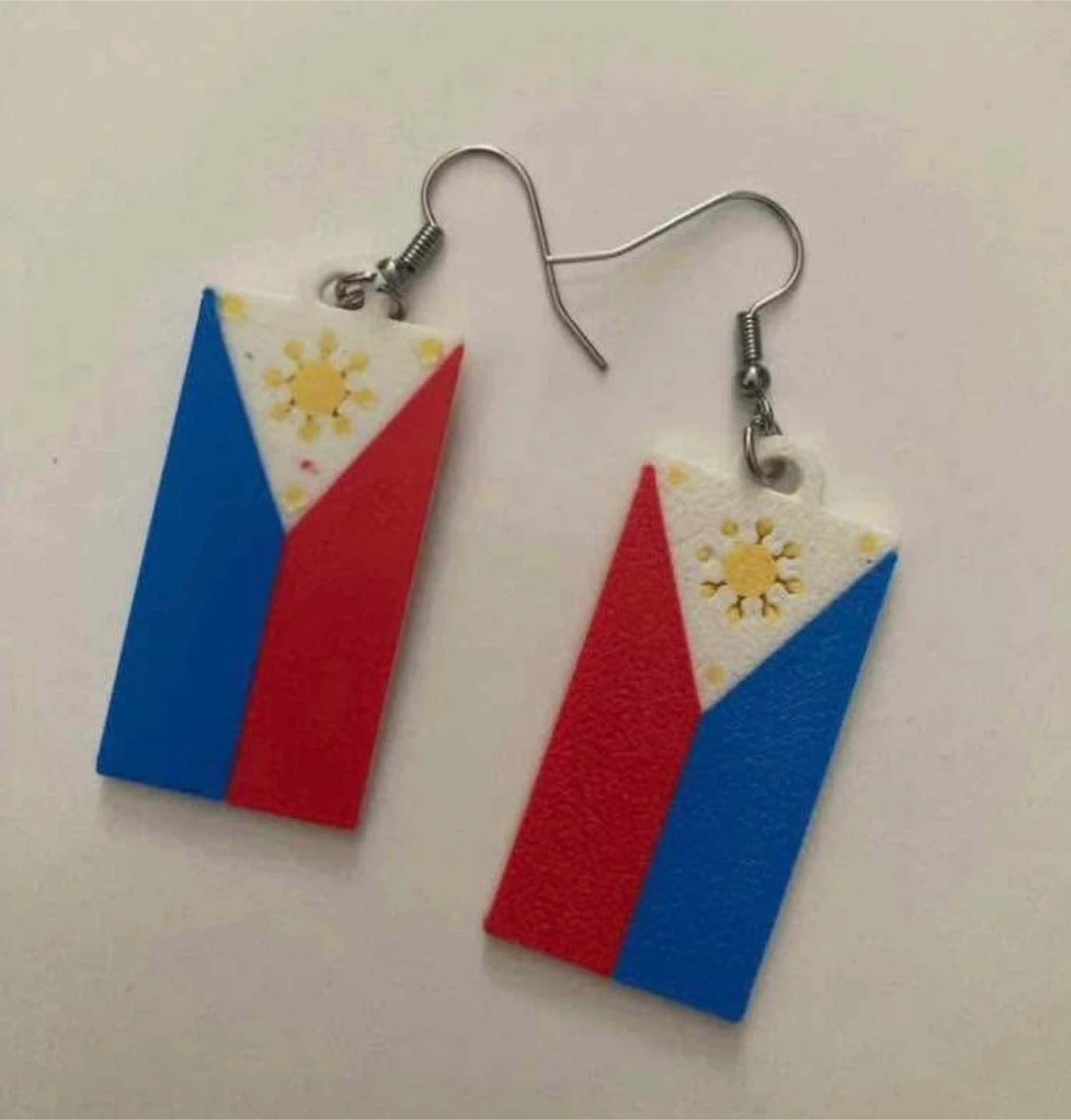 Unique and eye-catching earrings featuring the Philippines flag design! These earrings are perfect for showing off your pride or adding a pop of colour to any outfit. This is a 3d printed earrings.