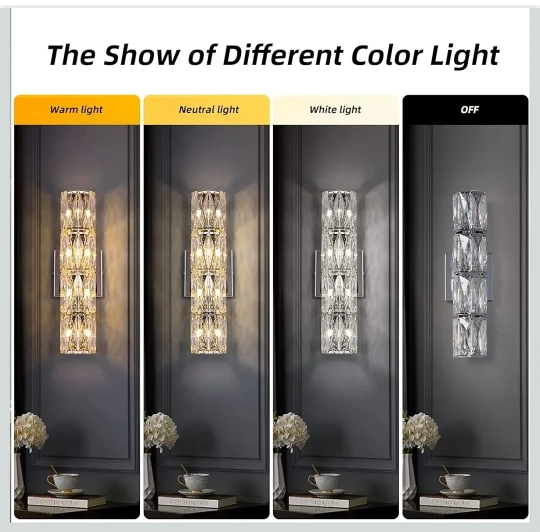 Add a touch of elegance to your home with this crystal wall sconce! It provides warm, neutral, and white light to suit any mood. Perfect for adding a stylish touch to your bathroom or any room in your home