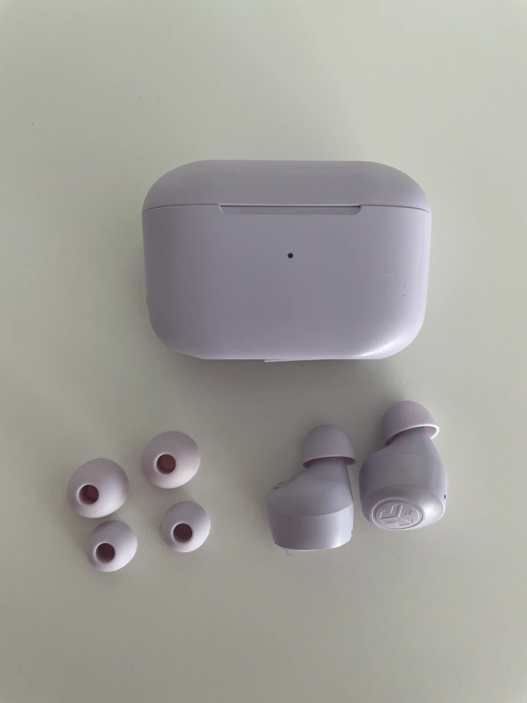 Selling a pair of JLab Go Air Pop earbuds in lavender! They come with the charging case and extra ear tips, so you can find the perfect fit. They are in great condition, barely used.