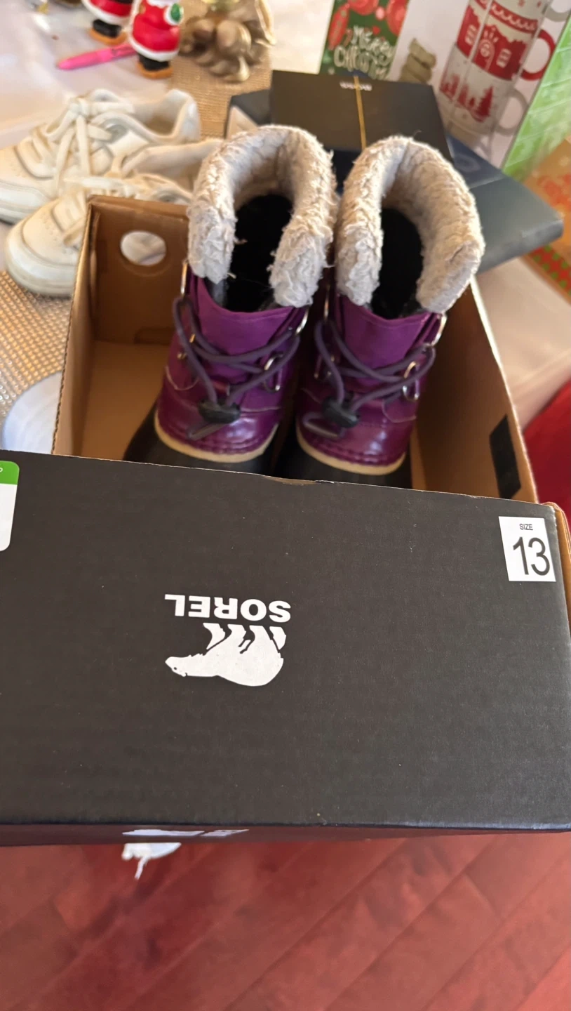 Selling a pair of Sorel winter boots in purple! They are in great shape and size 13. Perfect for keeping your little one's feet warm and dry this winter. The box is included too!