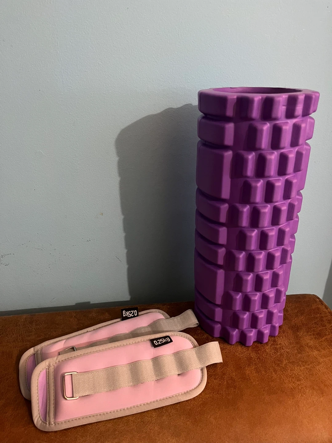 Purple Foam Roller & Pink Ankle Weights (0.25kg)