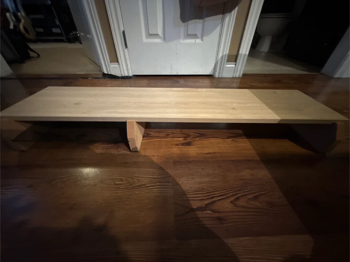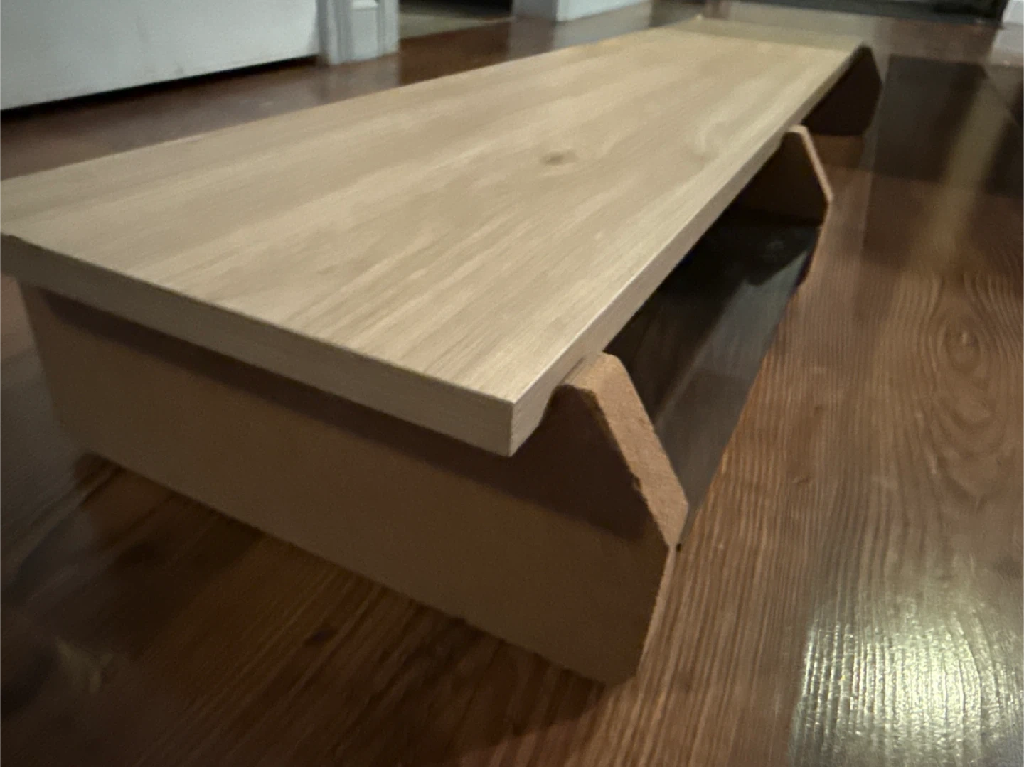 Selling a wooden monitor stand! It's in great condition and perfect for raising your monitor to a comfortable viewing height. It's a simple, sturdy design that will look great on any desk