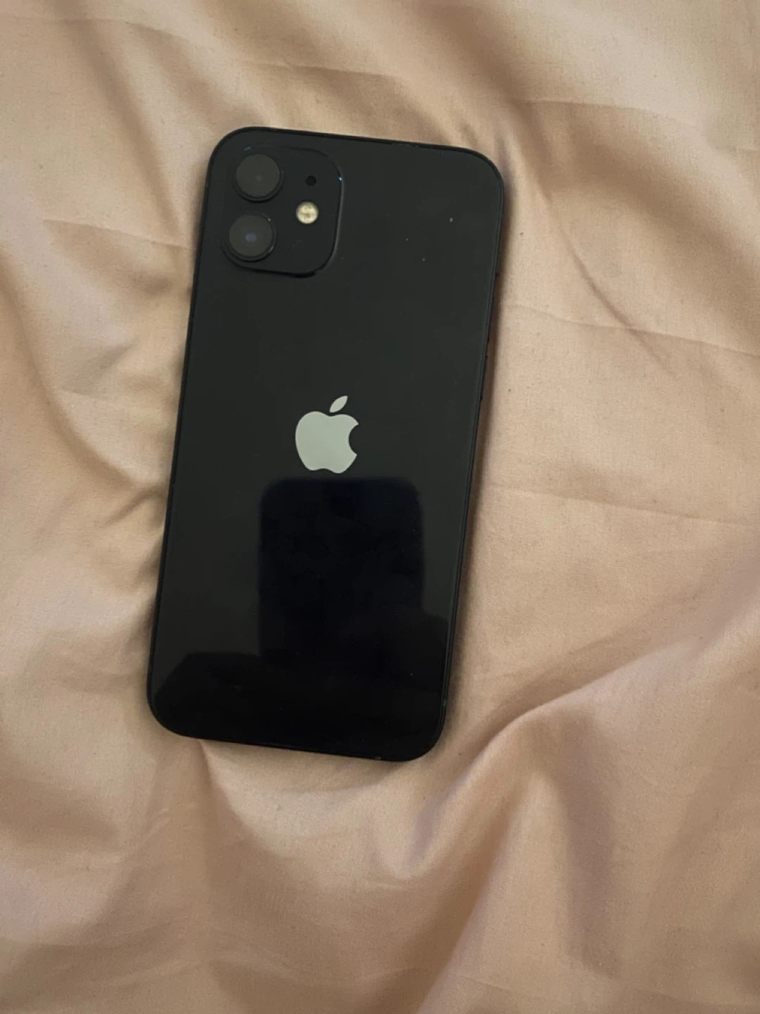 Selling a black iPhone 12. Very minor scratches on the sides. Screen is not cracked, but the display is not working. Screen stays black and shows lines when powered on. Phone turns on but needs a screen replacement. Price is negotiable. Willing to trade.