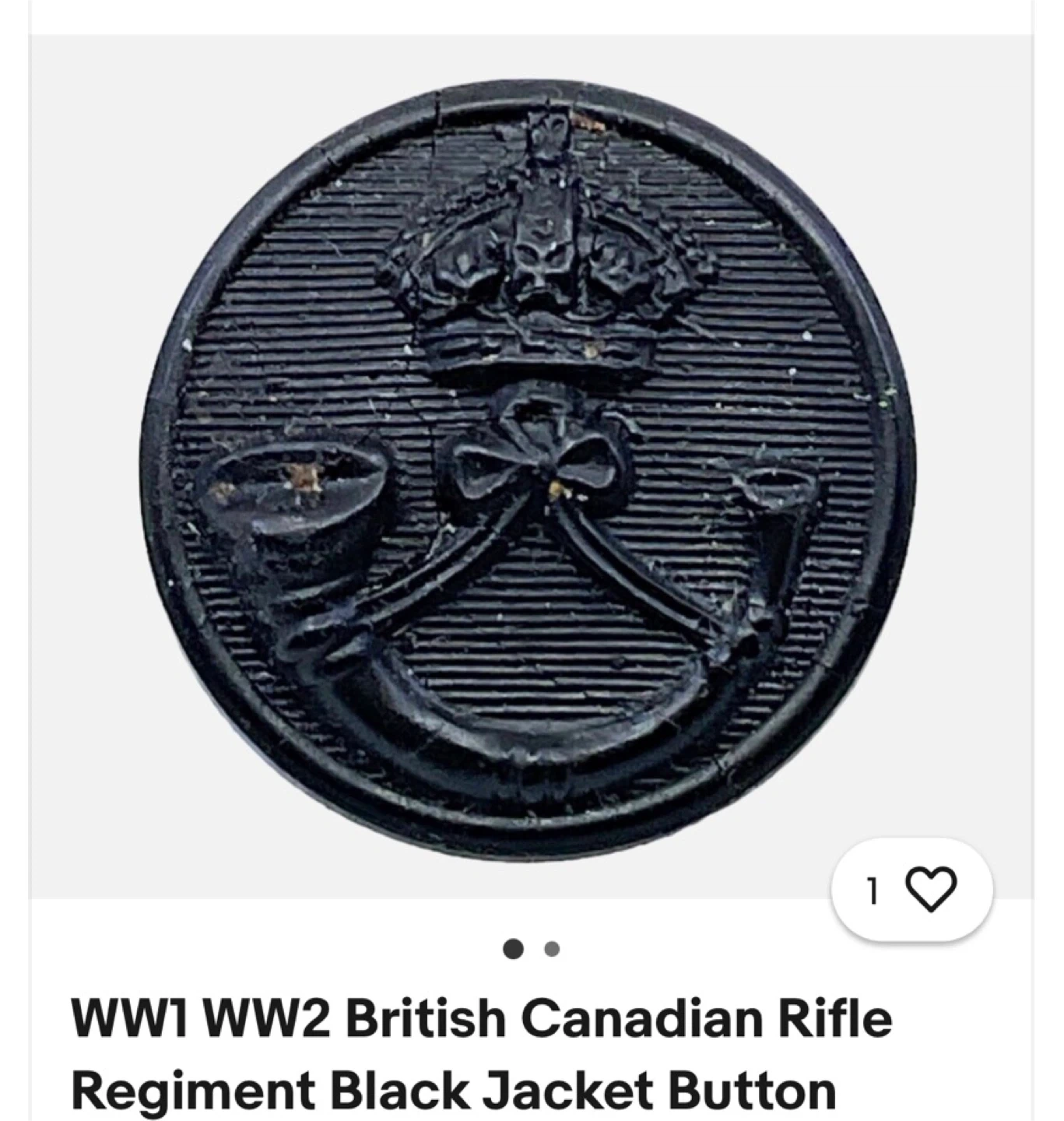 WW1 WW2 British Canadian Rifle Rifles Regiment button
